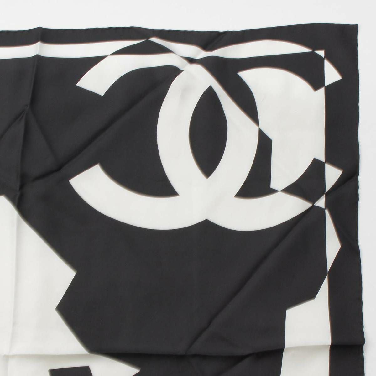シャネル ココマーク マドモアゼル シルク モノトーン スカーフ ブラック ホワイト