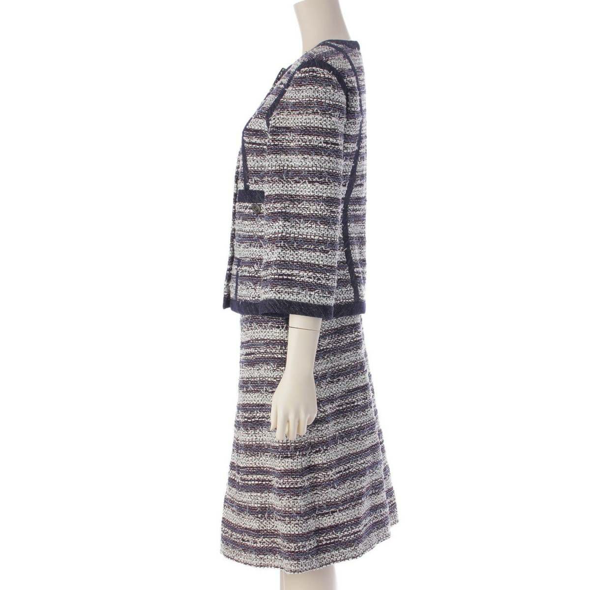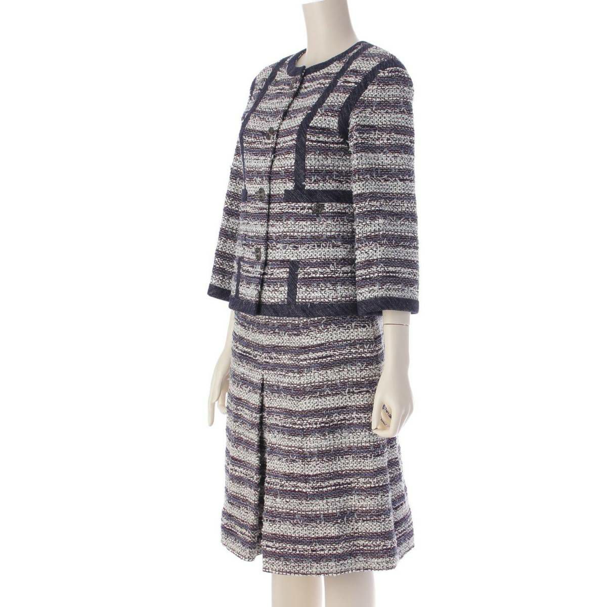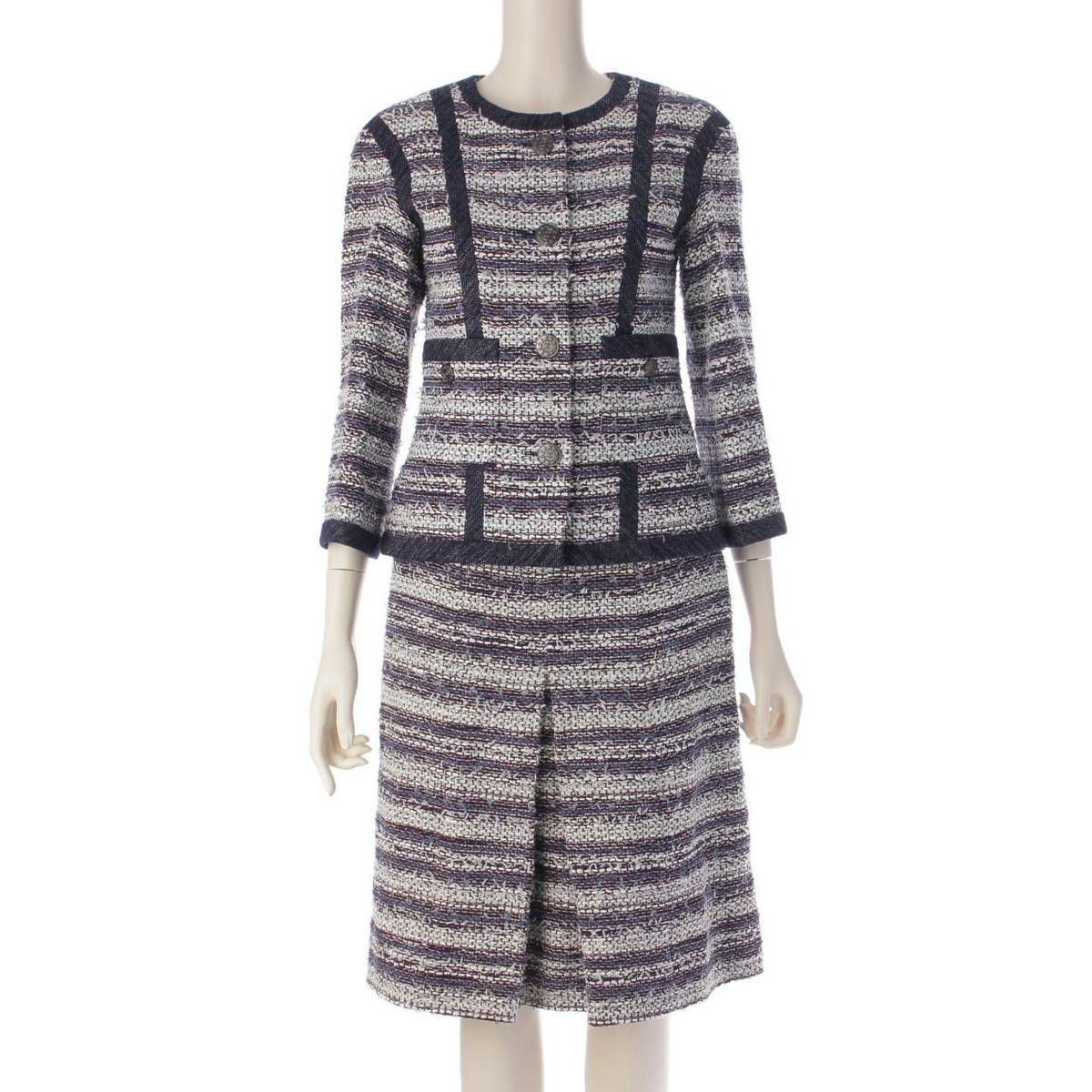シャネル ココボタン ツイード ジャケット スカート セットアップ P45436 ネイビー