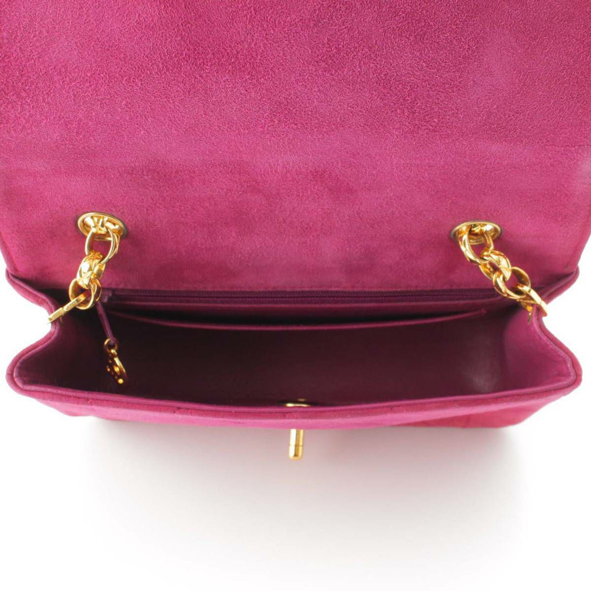 シャネル ダイアナ スエード シングルフラップ マトラッセチェーンショルダーバッグ パープル