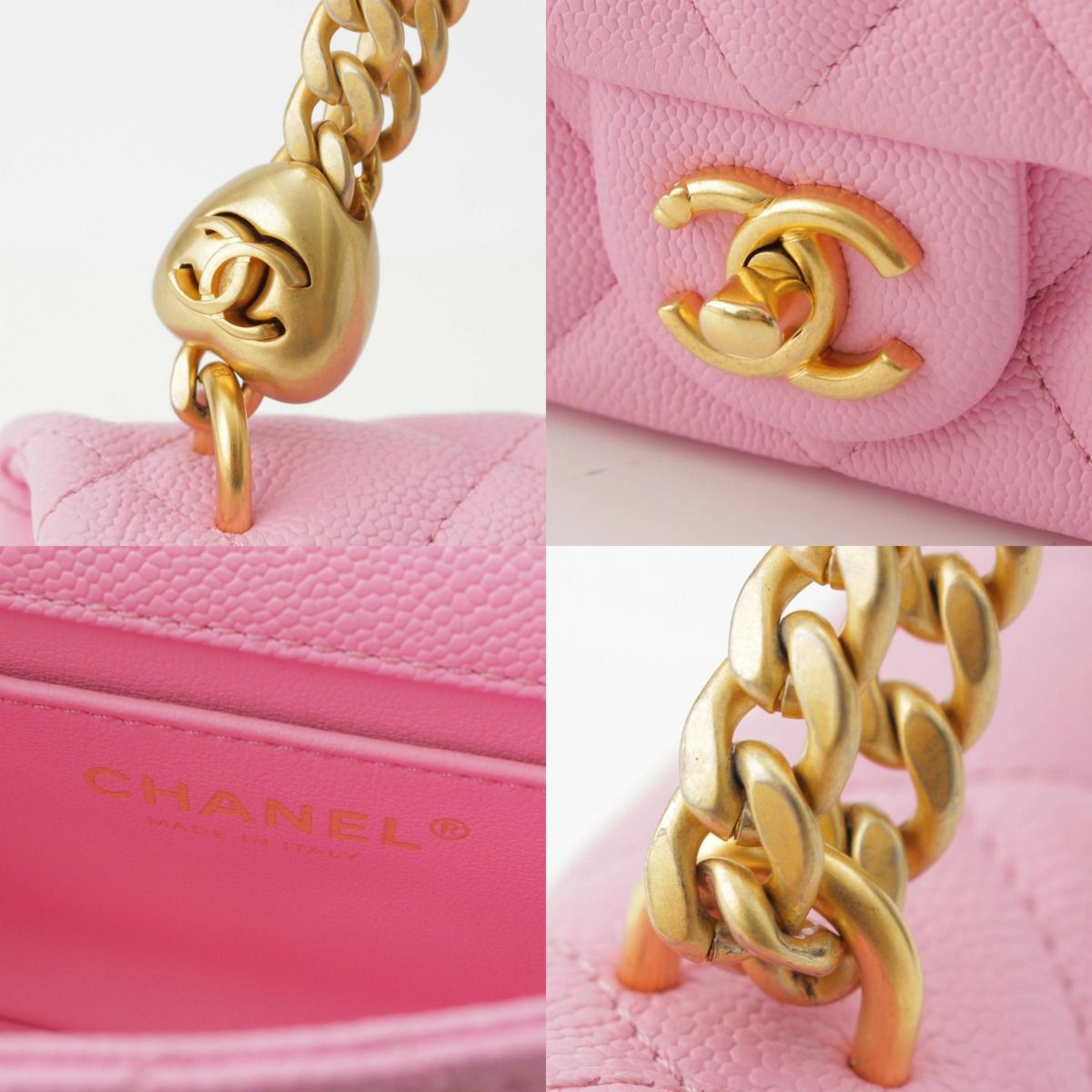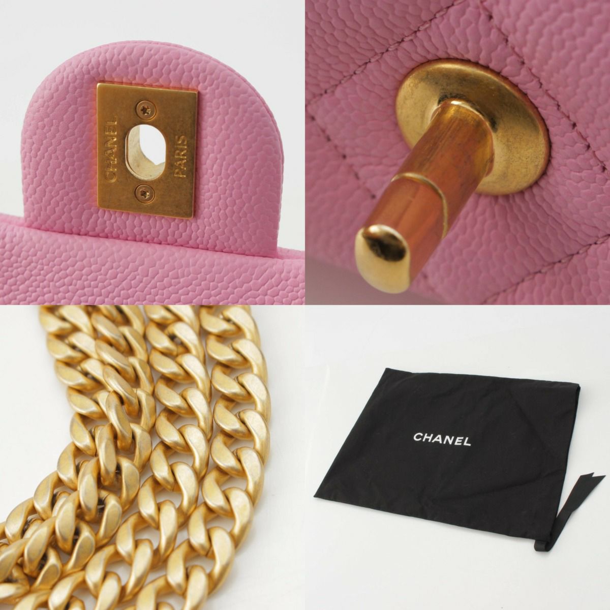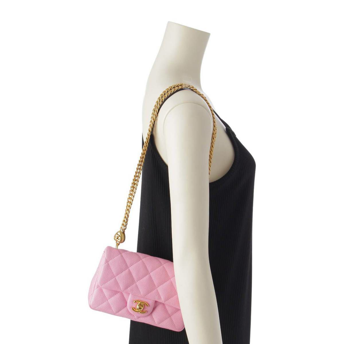 シャネル ミニマトラッセ17 キャビアスキン ハートチェーンショルダーバッグ ピンク×ゴールド
