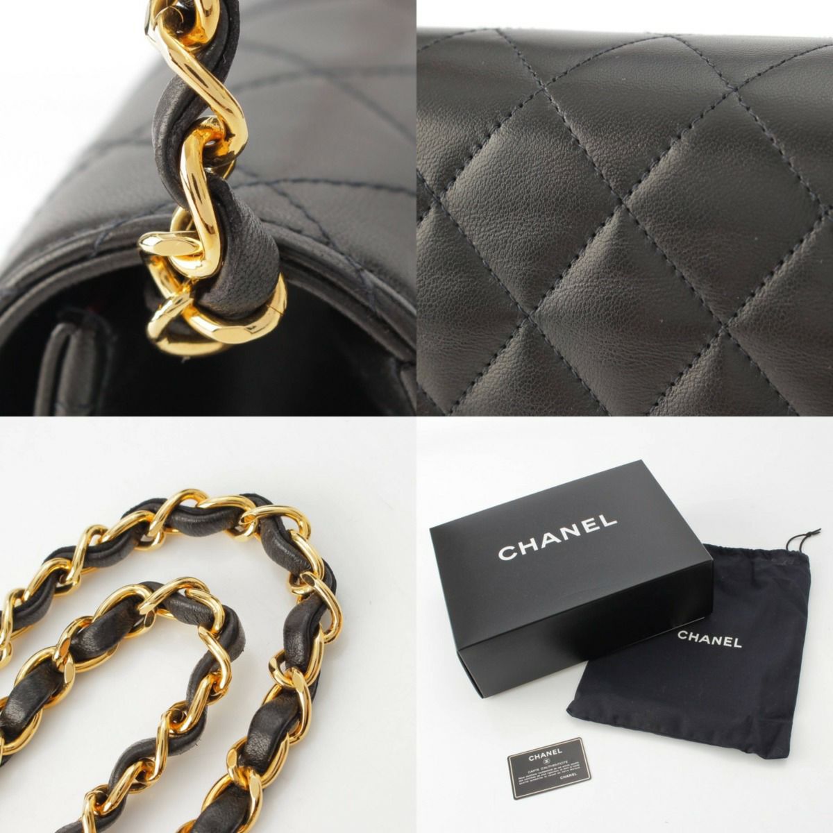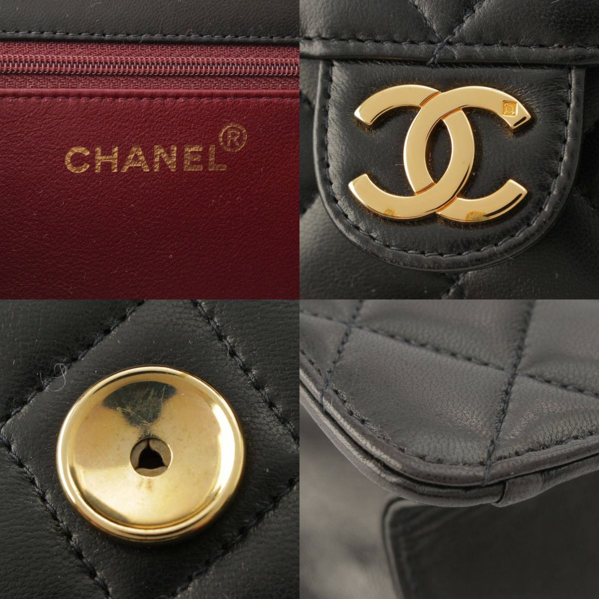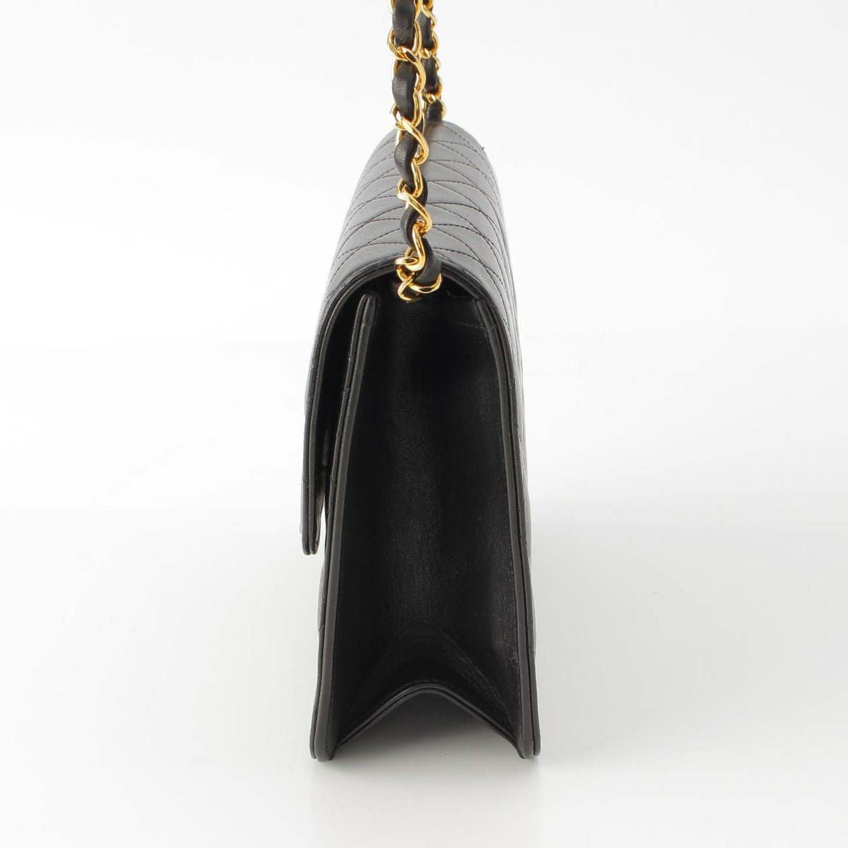 シャネル 5番台 マトラッセ プッシュロック ラムスキン チェーンショルダーバッグ ブラック