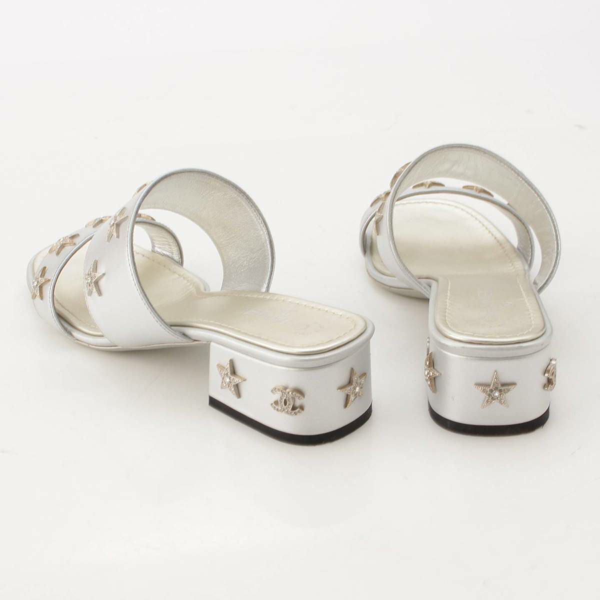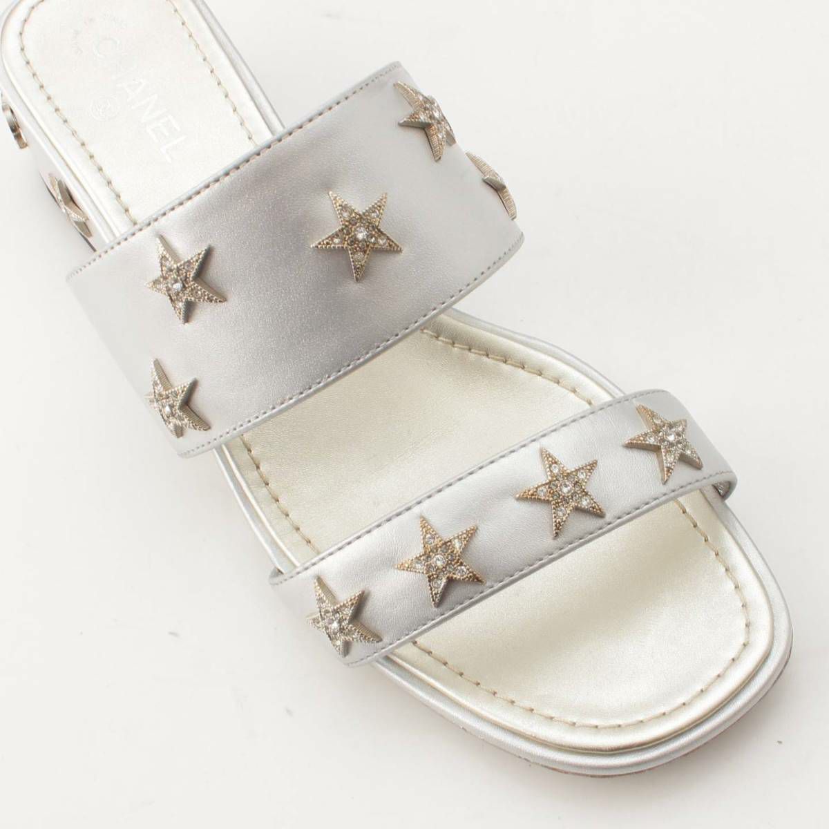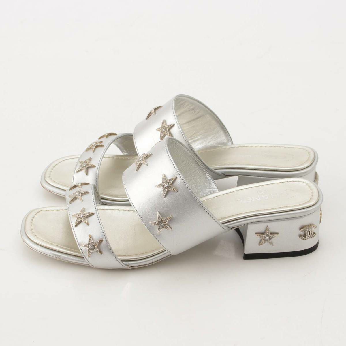 シャネル ココマーク スター ビジュー レザー サンダル ミュール G32351 シルバー 35 1/2