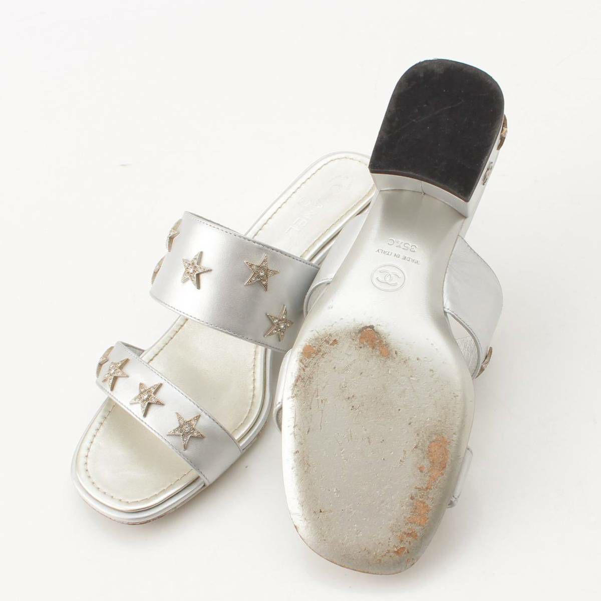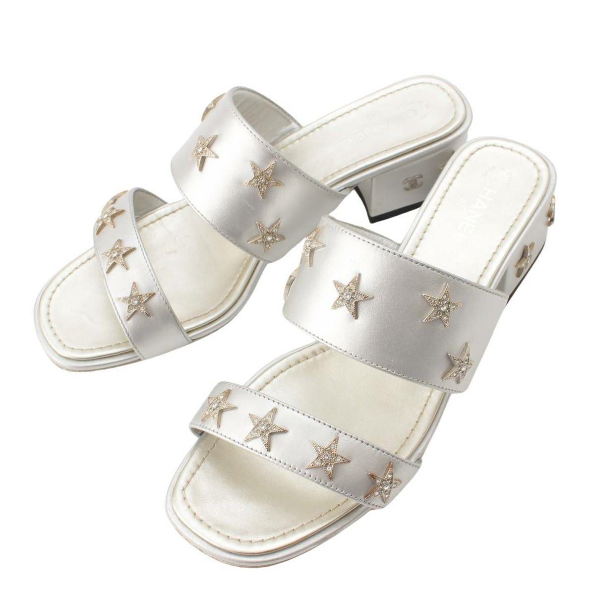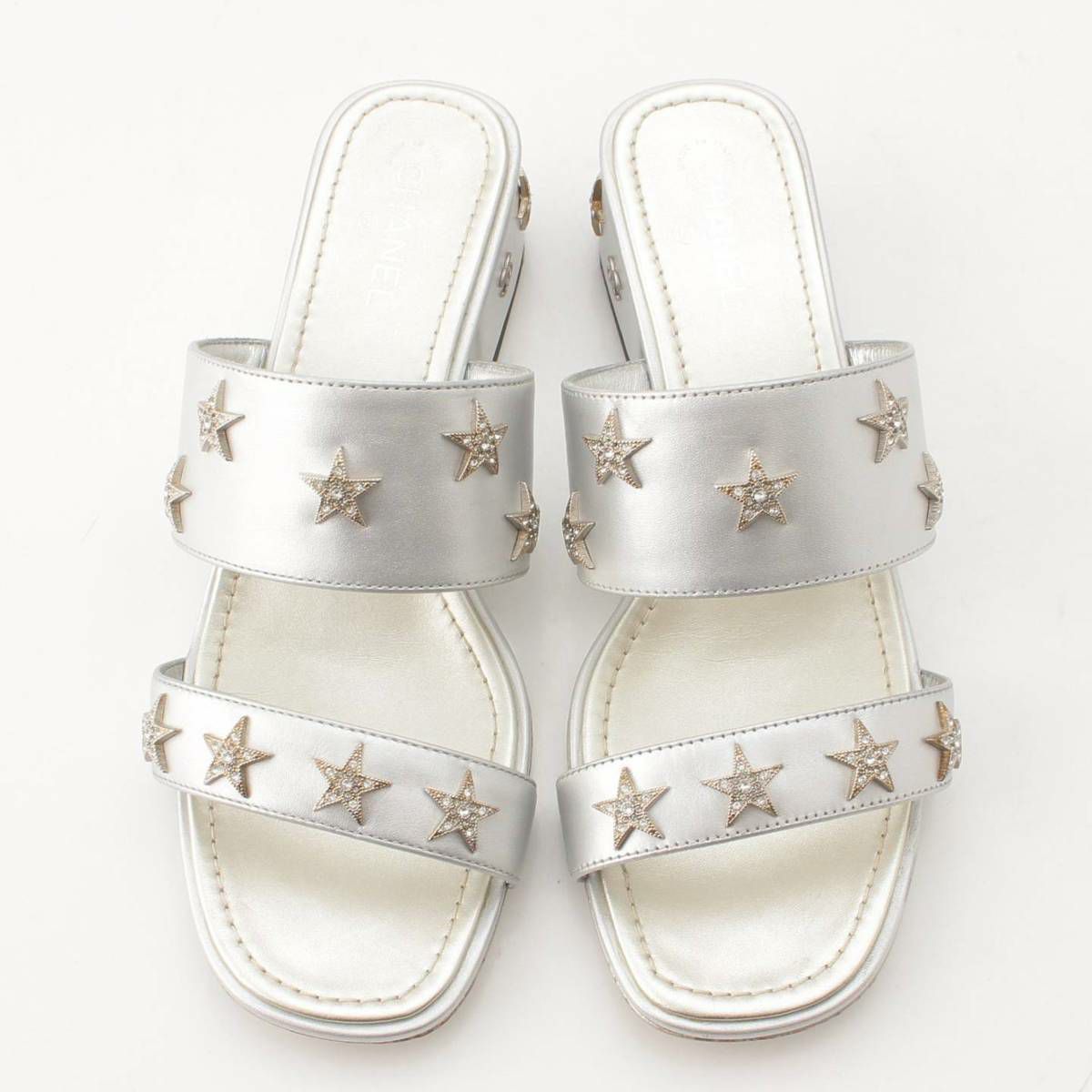 シャネル ココマーク スター ビジュー レザー サンダル ミュール G32351 シルバー 35 1/2
