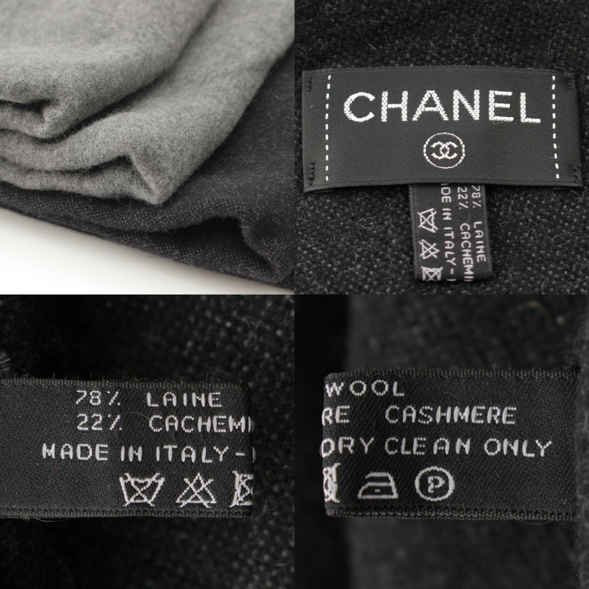 シャネル シルク ウール ココマーク 大判 フリンジ ストール ブランケット ブラック グレー