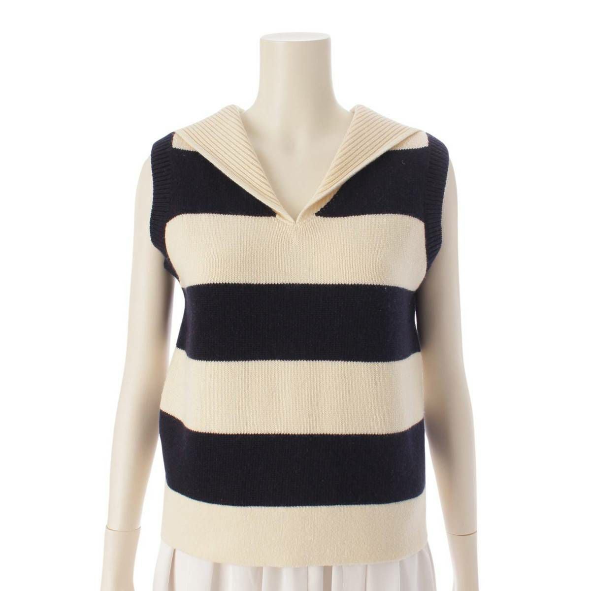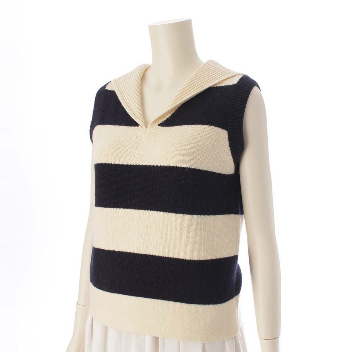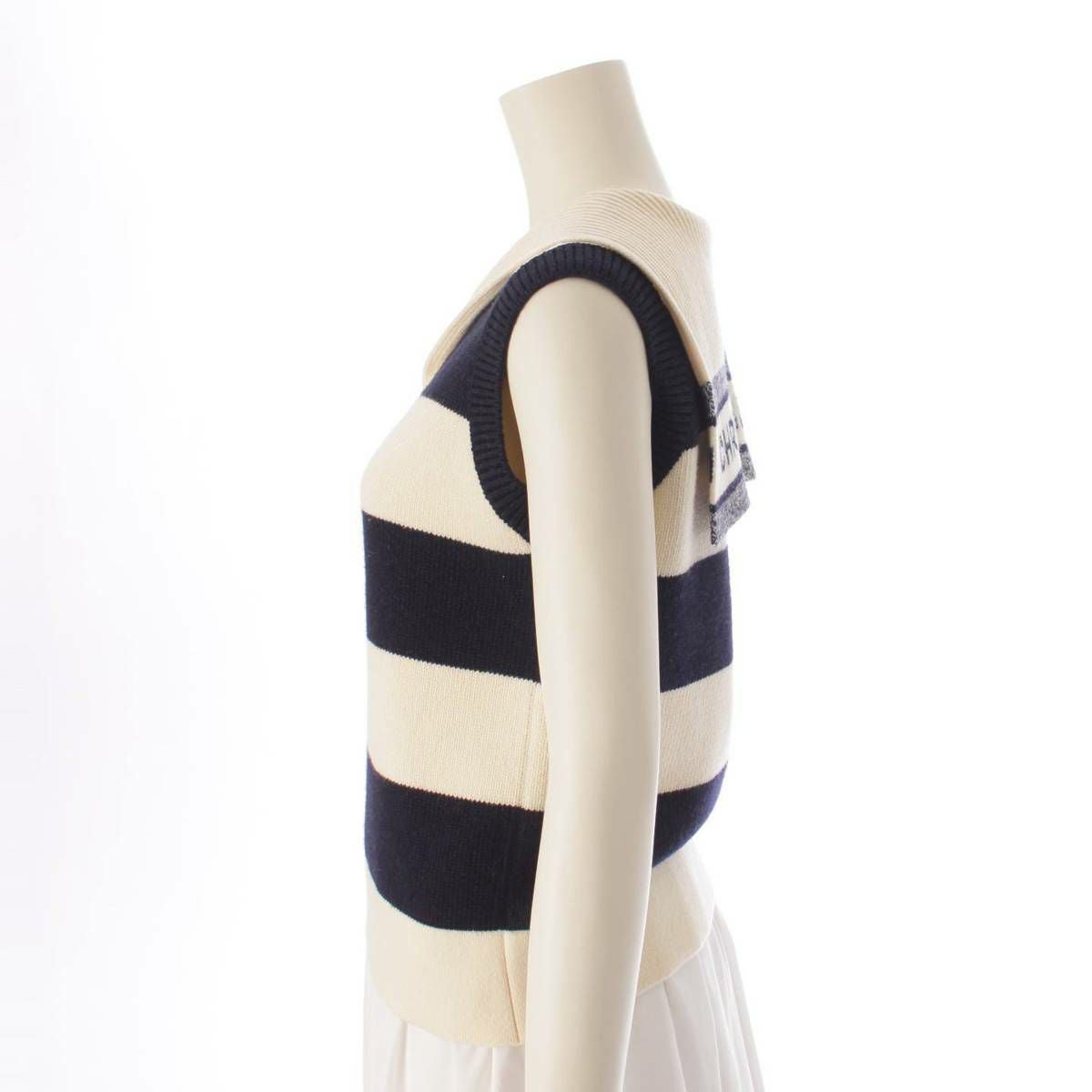 ディオール DIOR ウール×カシミヤ ノースリーブ セーラー セーター ニットベスト アイボリー 34