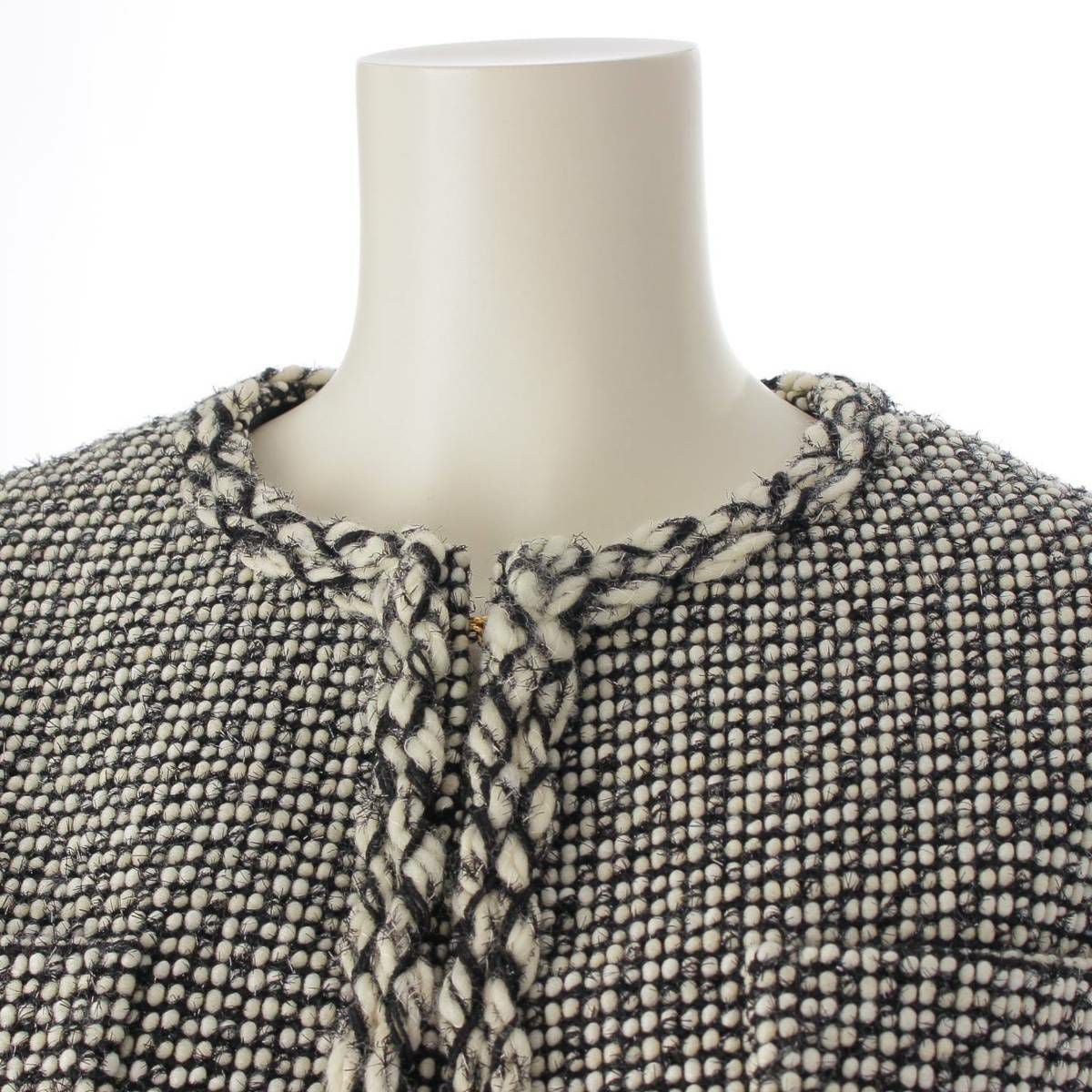 ドゥロワー DRAWER 22年 ノーカラー ツイード ジャケット トップス 6522-299-0724 ホワイト ブラック 36