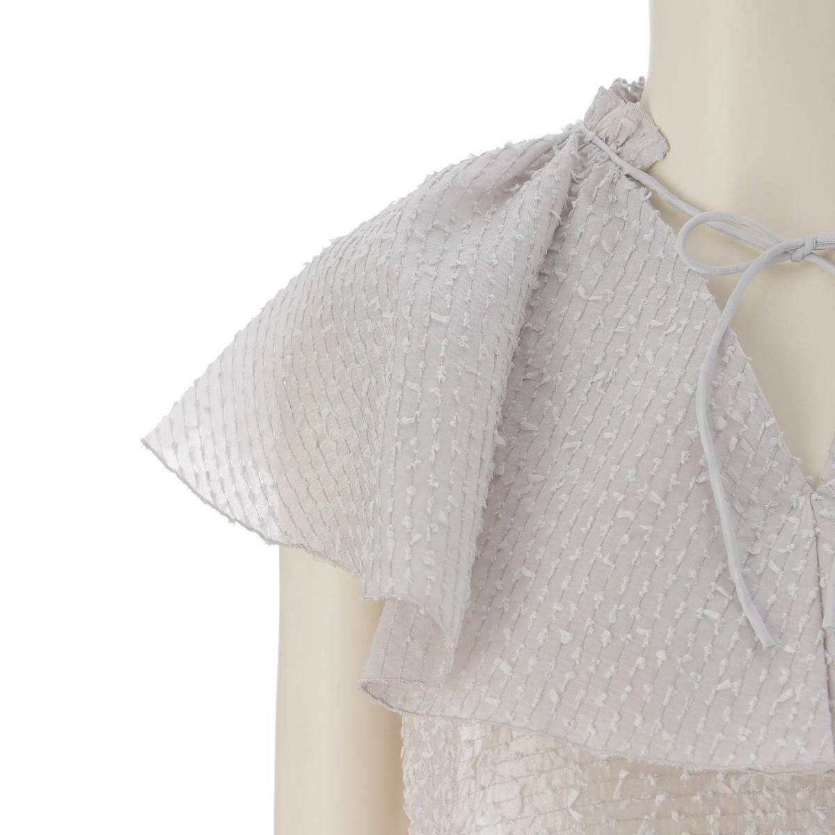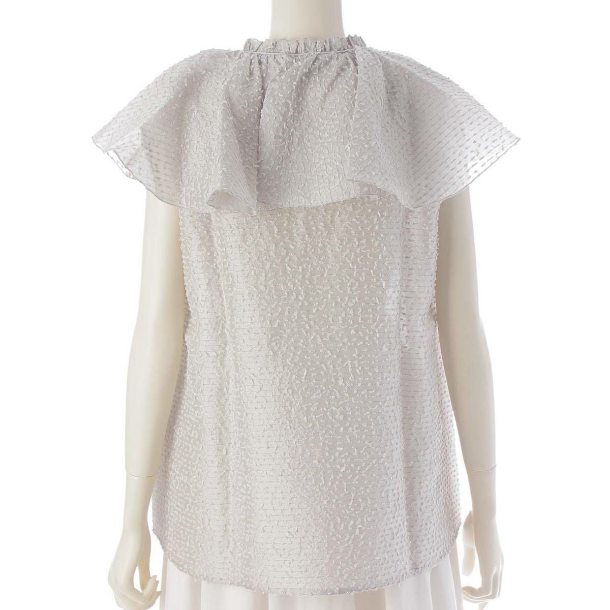 ドゥロワー DRAWER オーガンボーダーラッフルカラー シルク×ナイロン ブラウス グレー 36