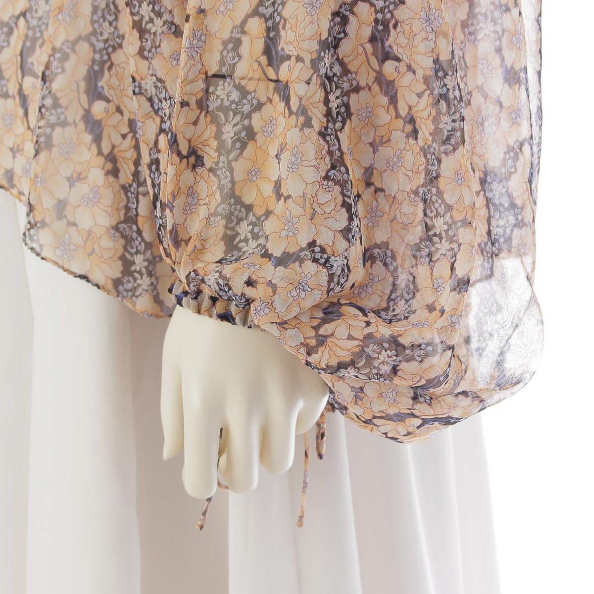 ドゥロワー DRAWER バルーンスリーブ シルク シースルー プルオーバーブラウス ブラック×ベージュ 36
