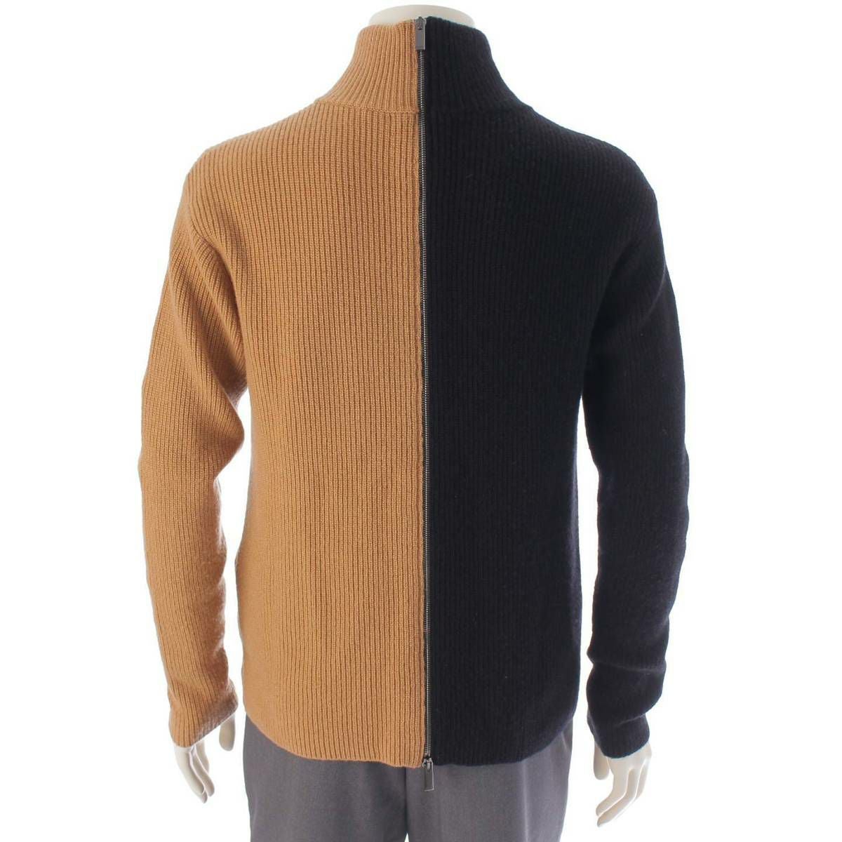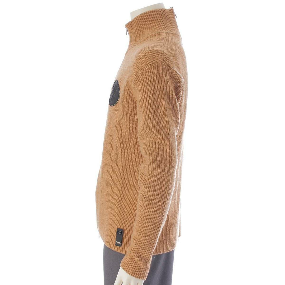 フェンディ メンズ FF ロゴ ジップアップ ウール ニット ブルゾン ブラウン×ブラック 44