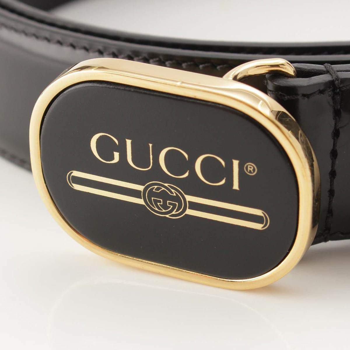 グッチ メンズ レザー ロゴ プレート ベルト 547754 ブラック 95/38