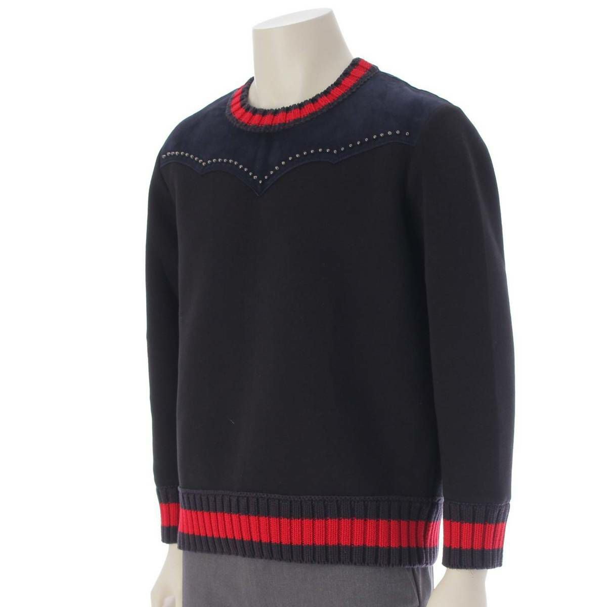 グッチ メンズ スウェット スエードレザー切替 プルオーバー 440151 ブラック ネイビー