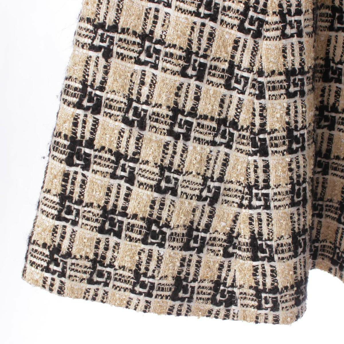 【グッチ】Gucci スクエアG ロゴ ツイード フレア スカート 652126 ベージュ×ブラック 36 【中古】【鑑定済・正規品保証】207817