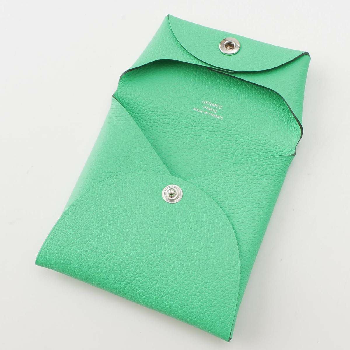エルメス B刻 バスティア エバーカラー レザー コインケース シルバー金具 グリーン