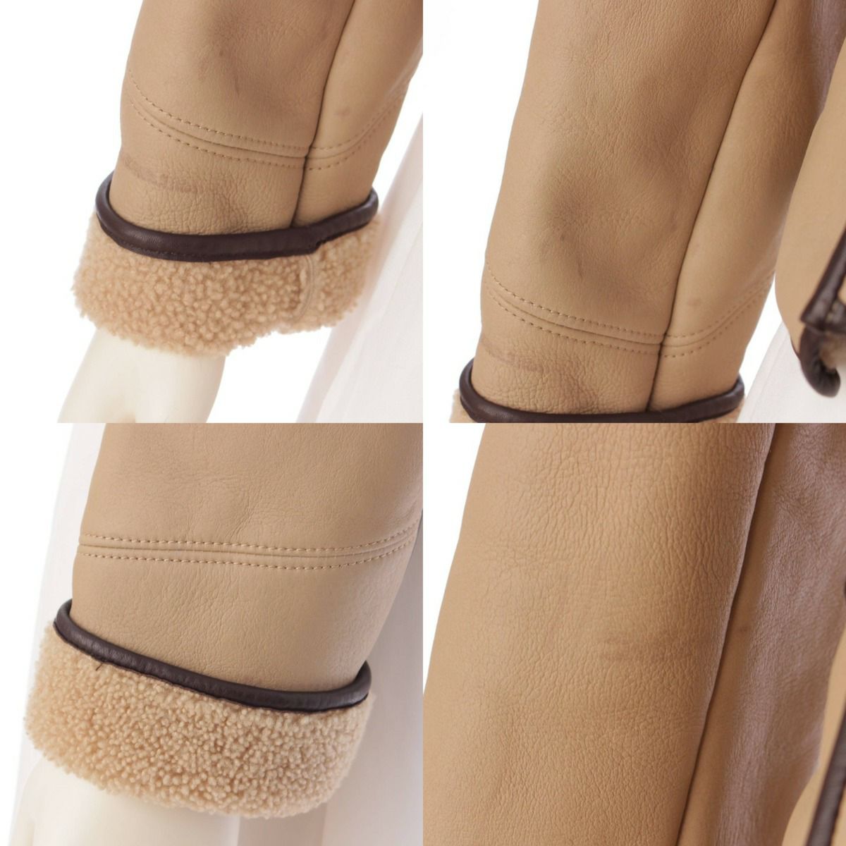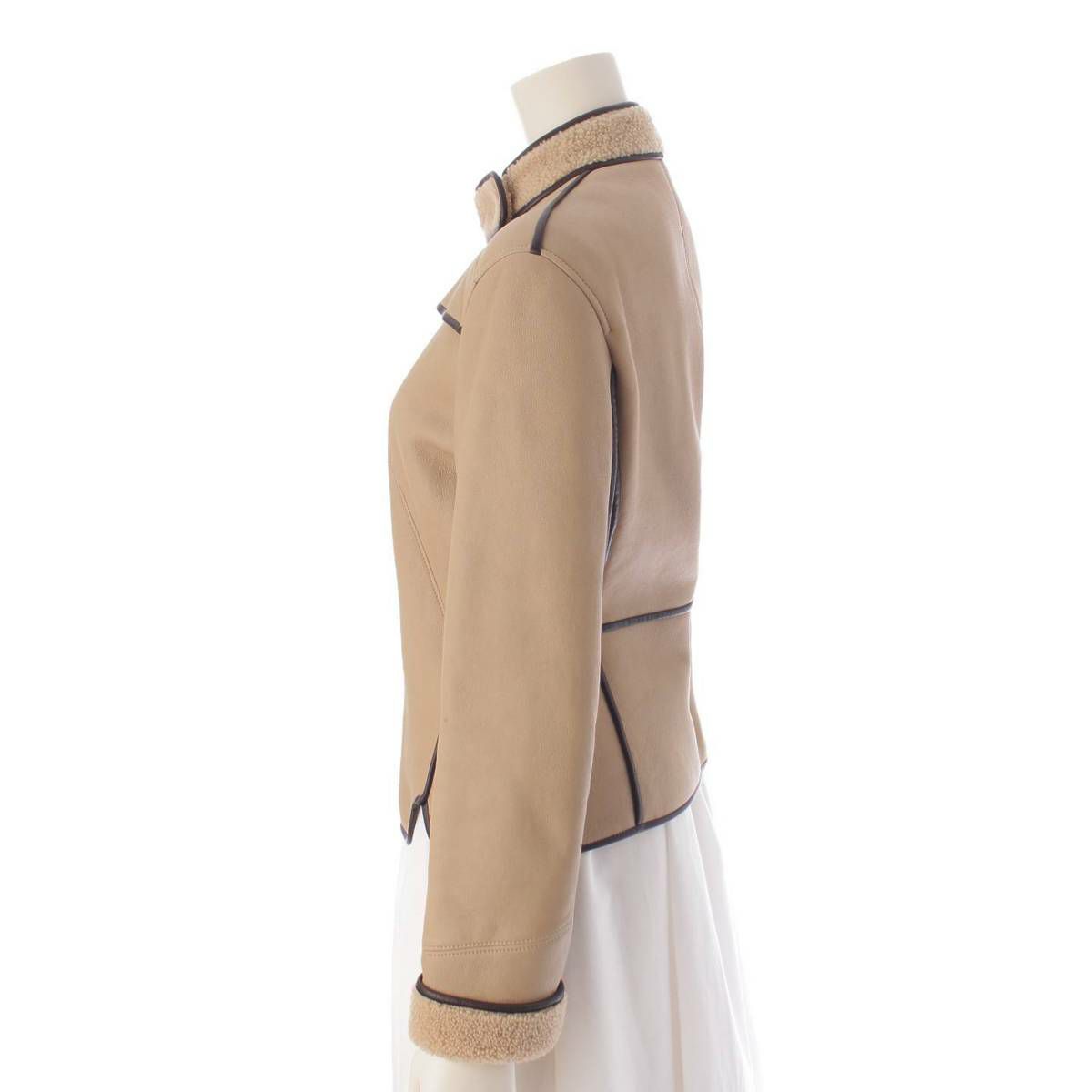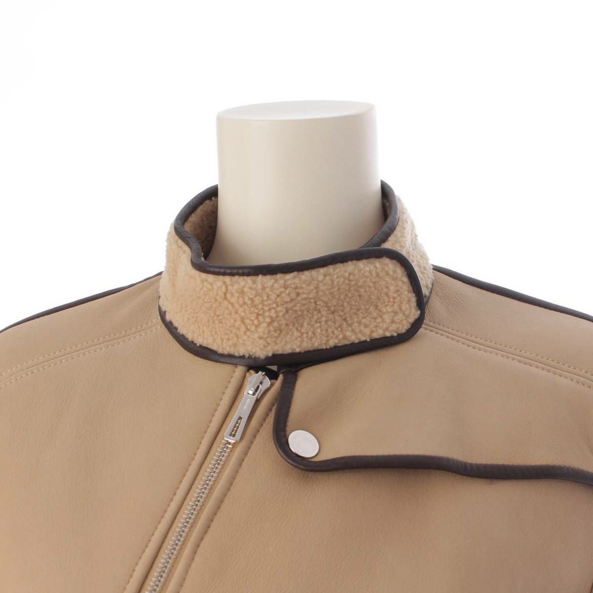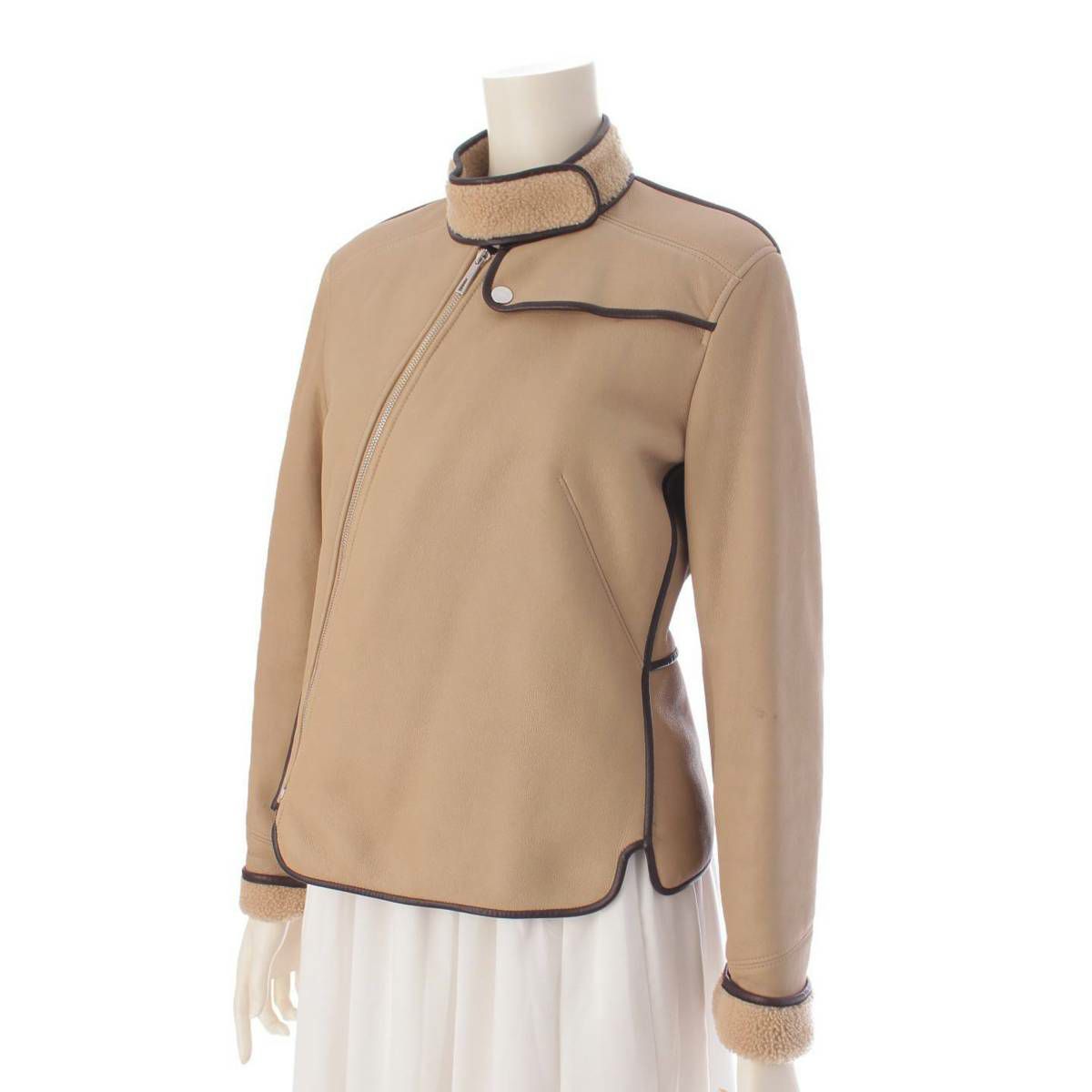 エルメス ムートンファー レザー ライダース バイカージャケット ブラウン 38