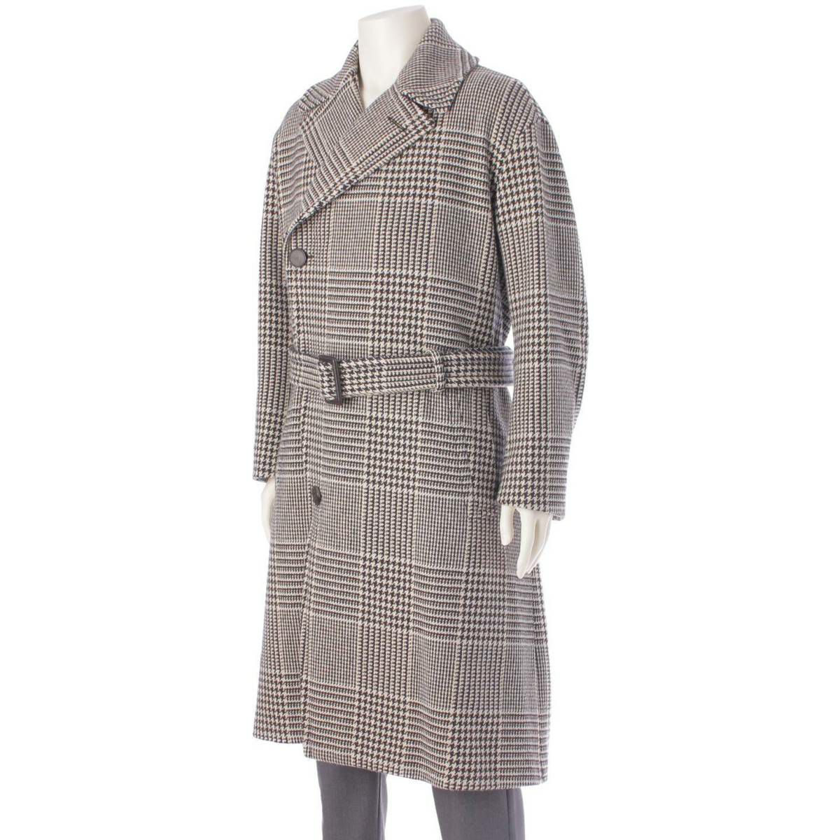 エルメス 17年 ウール メンズ グレンチェック ベルテッド トレンチコート PT9504 ブラック 46