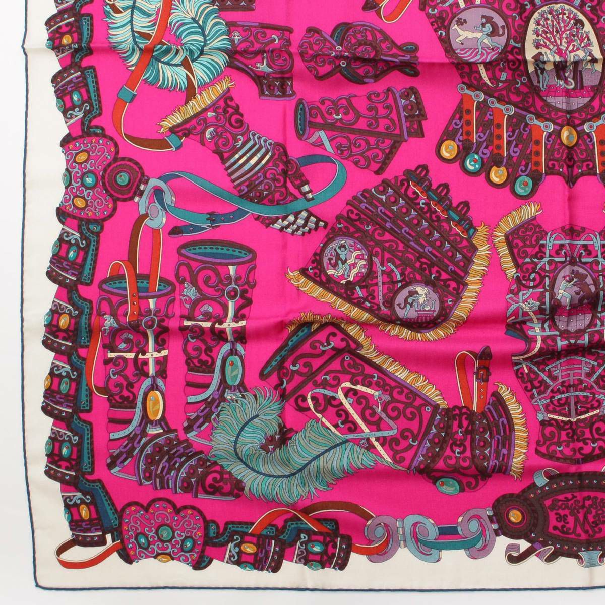 エルメス カレ140 ジェアン 軍神マルス カシミヤ×シルク ストール パープル系