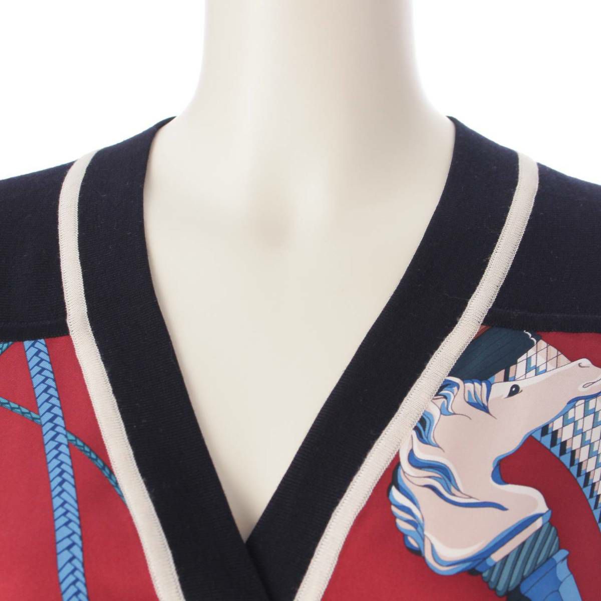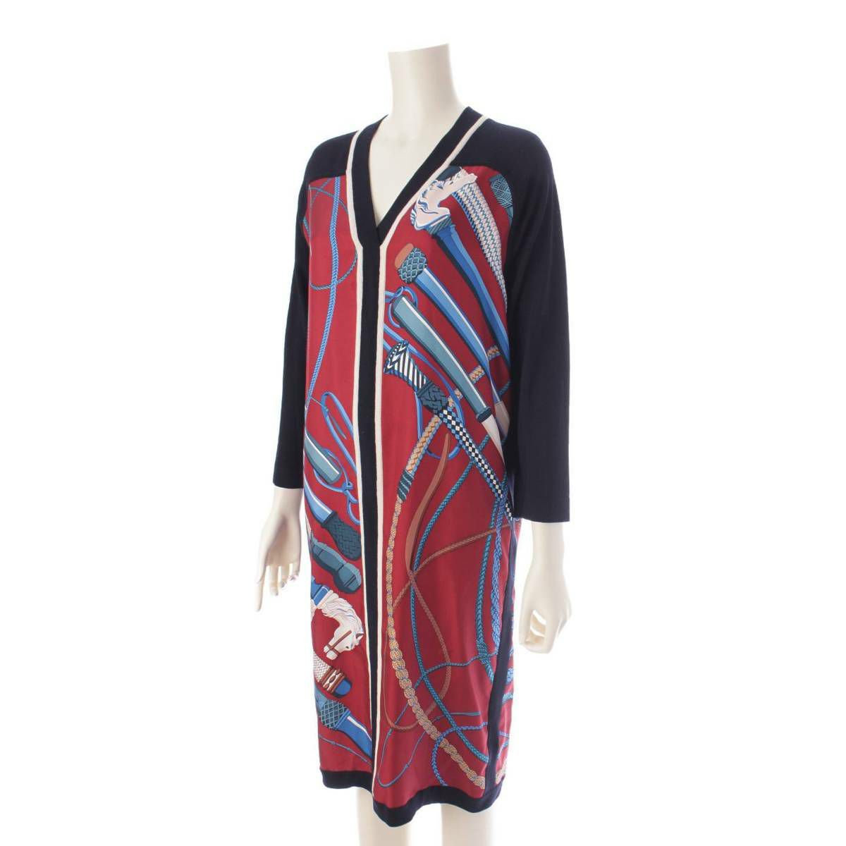 エルメス ツイルレーヌ Vネック シルク切替 ワンピース ドレス ブラック×ボルドー 36