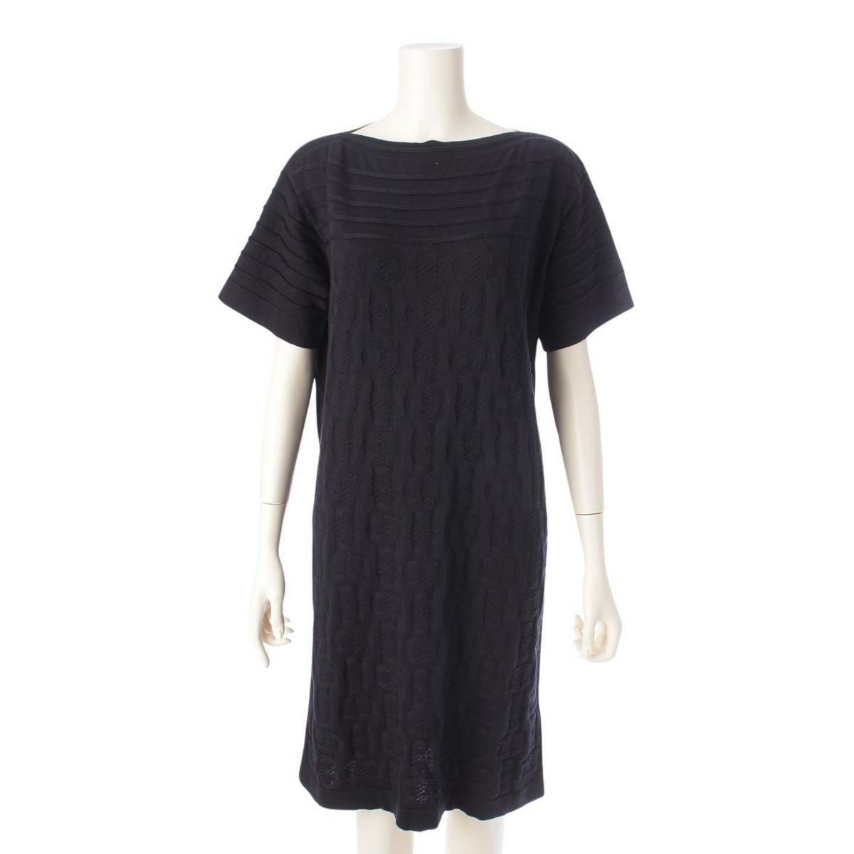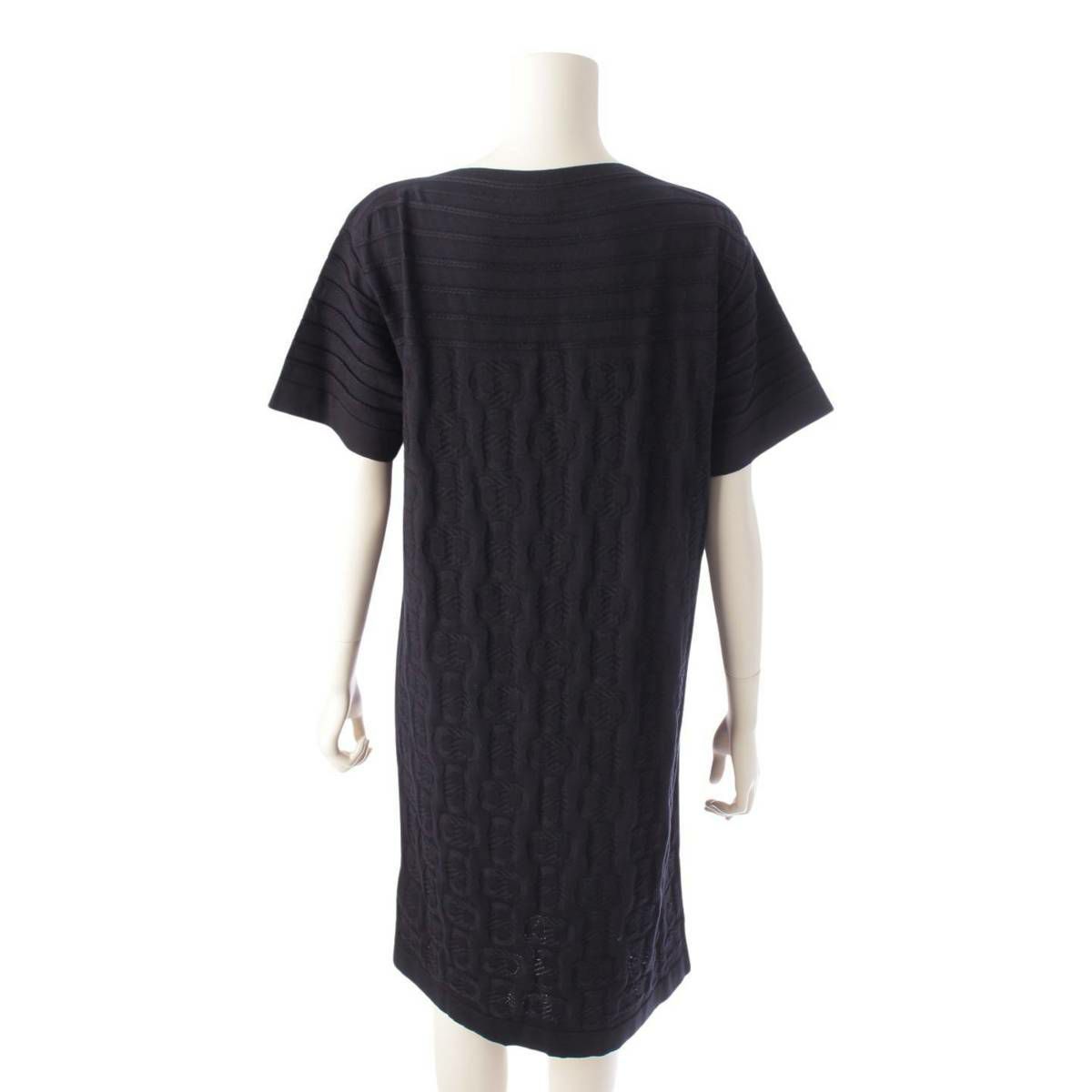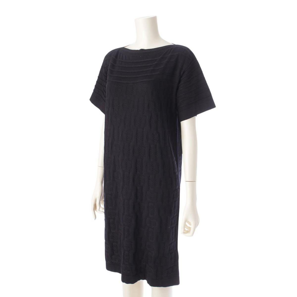 エルメス 23年 シルク混 シェーヌダンクル ニットワンピース ドレス ブラック 34