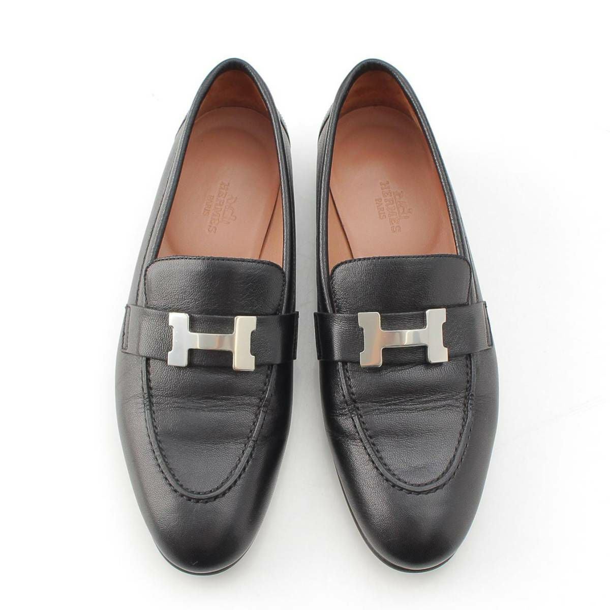 エルメス レザー モカシン ローファー パリ アーモンドトゥ ローヒール ブラック 35 1/2