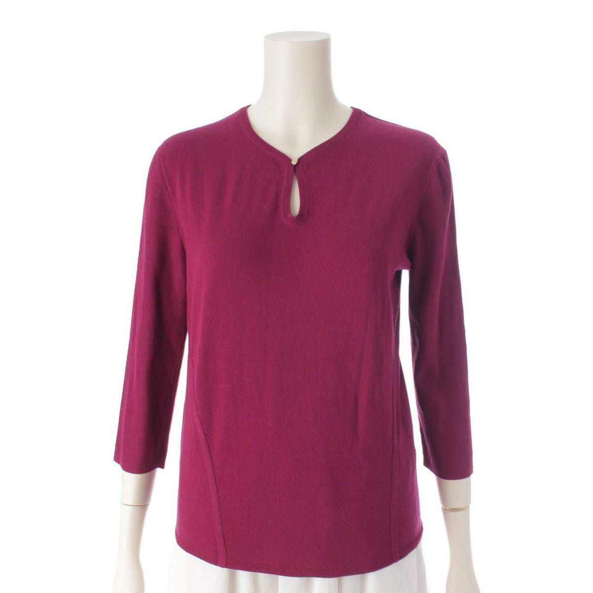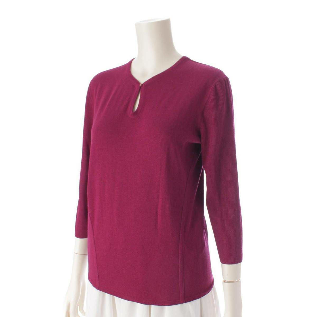 エルメス 七分袖 ウール フロントカットアウト ニット トップス パープル 36