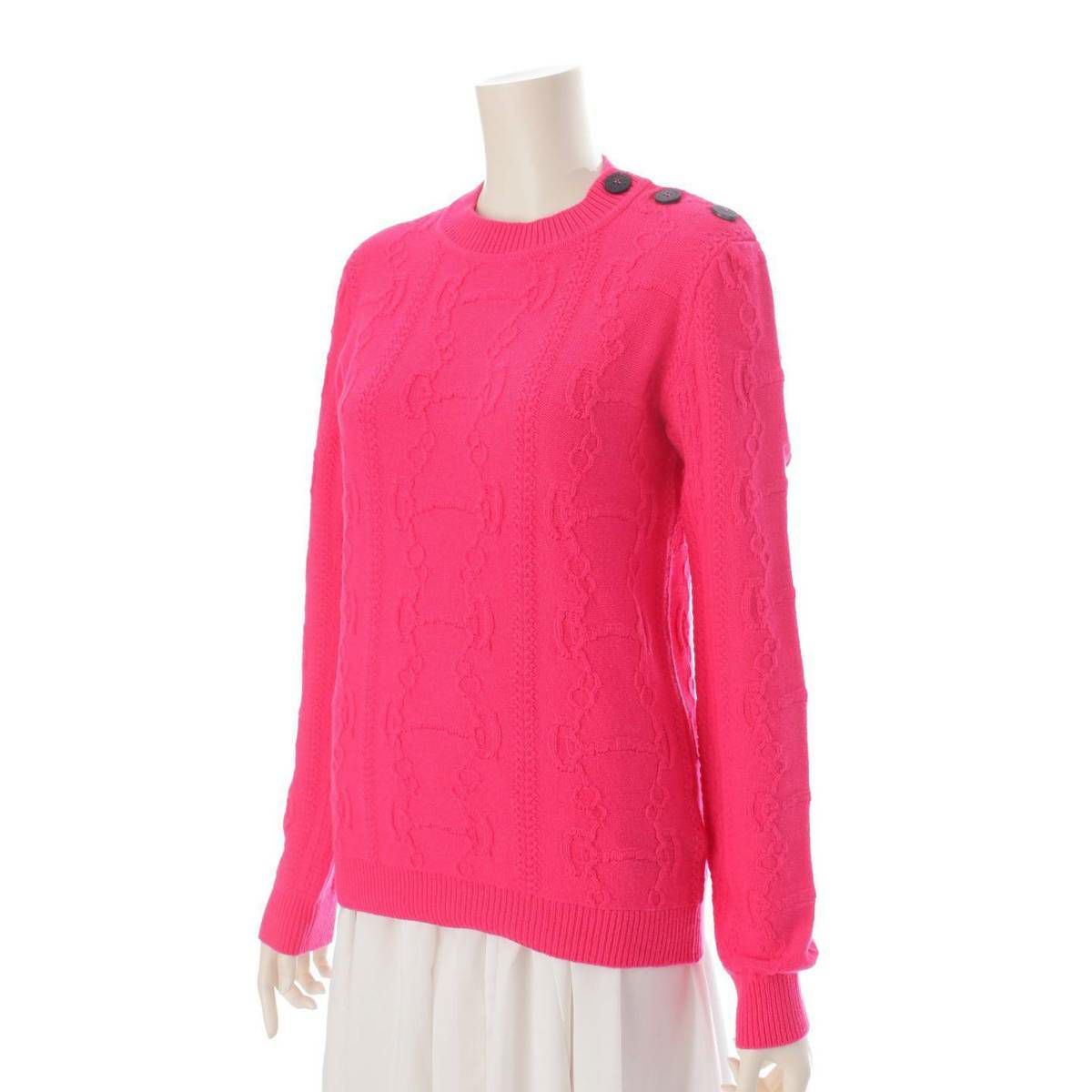 エルメス 22年 ロゴボタン ヴァージンウール×カシミヤ ニット セーター トップス ピンク 36