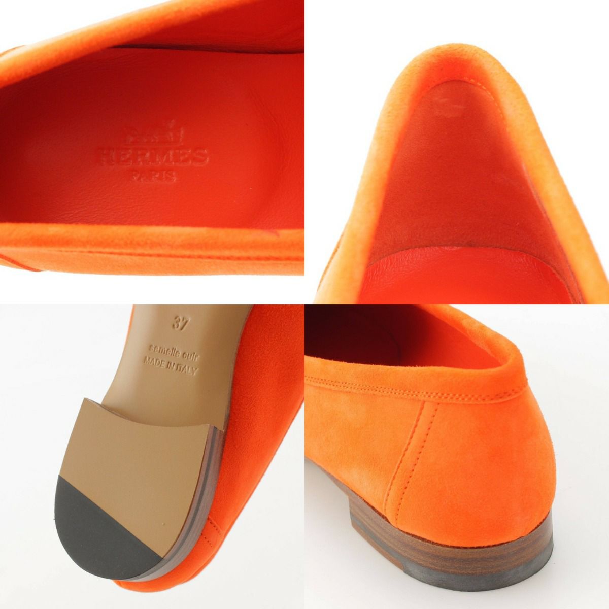 エルメス モカシンパリ スエードレザー Hロゴ ローファー シューズ オレンジ 37