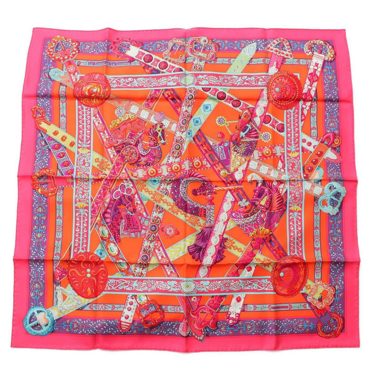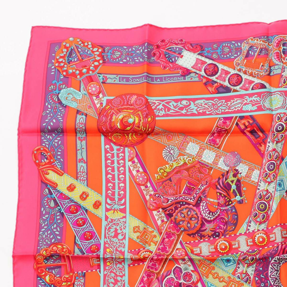 エルメス カレ90 Le Songe dela Licorne ユニコーンの夢想 シルクスカーフ H002722S ピンク