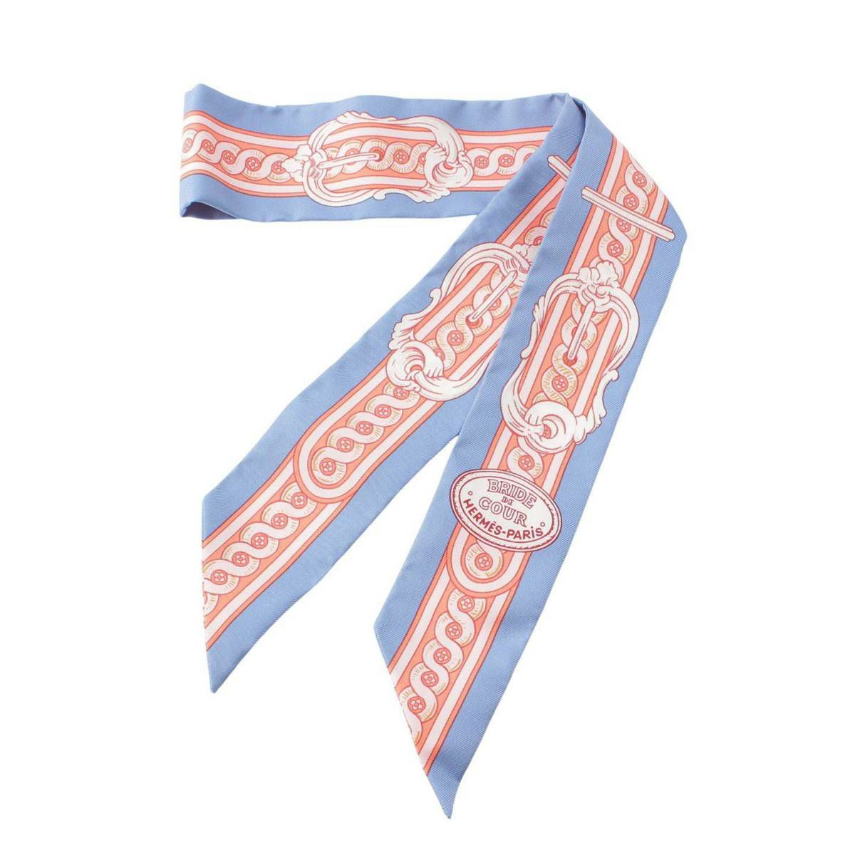 エルメス ツイリー BRIDE DE COUR 法廷の勒 シルクスカーフ ブルー×ピンク