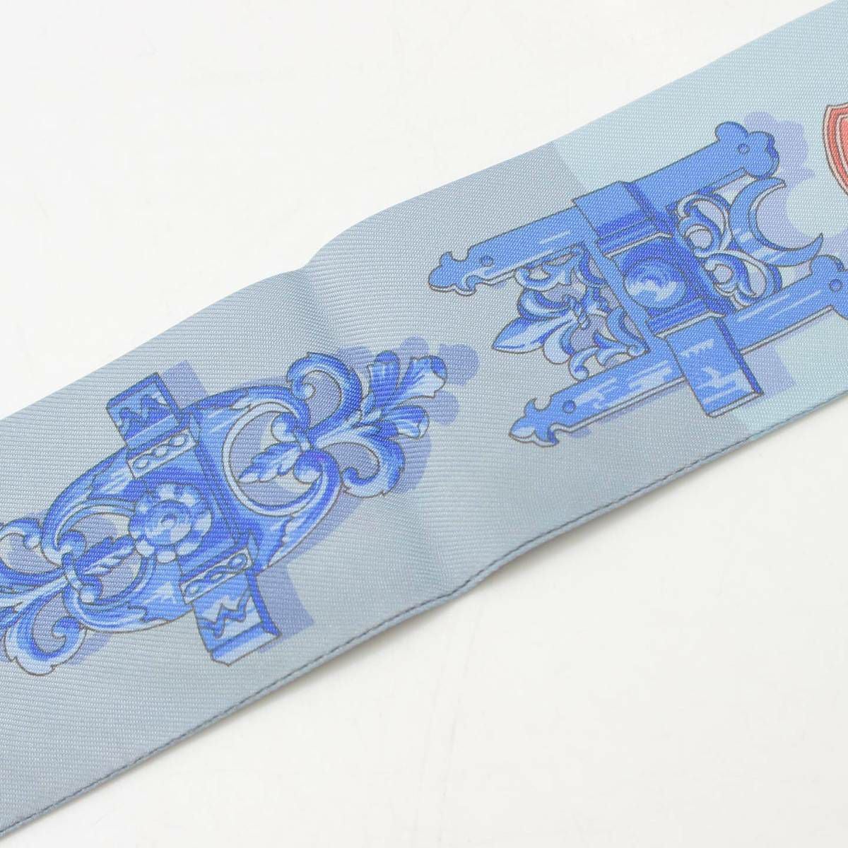 エルメス ツイリー Ferronnerie 鉄細工 総柄 シルク スカーフ ストール ピンク ブルー