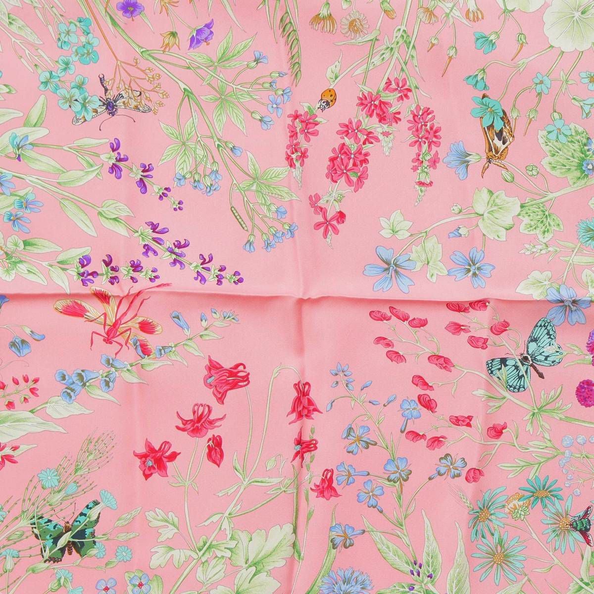 エルメス カレ90 シルク スカーフ LA PRAIRIE 草原 ピンク グリーン オレンジ マルチカラー