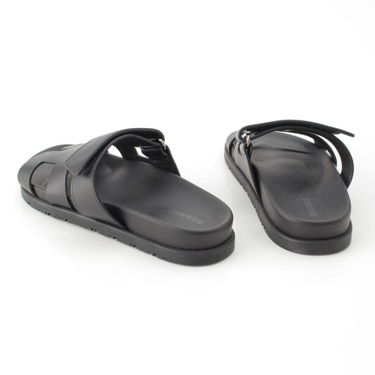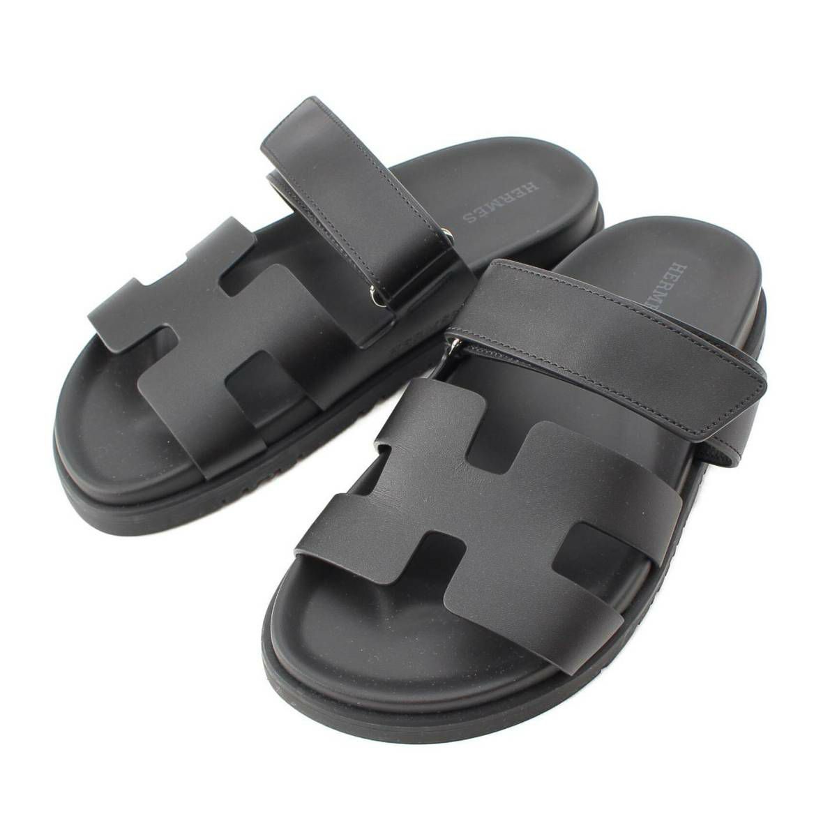 エルメス シプレ Hロゴ モチーフ レザー ラバーサンダル フラットサンダル ブラック 36