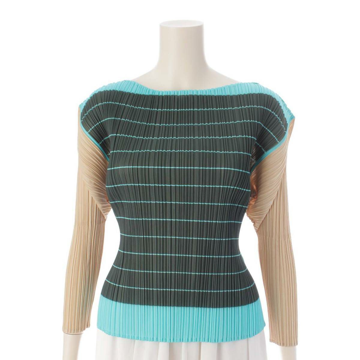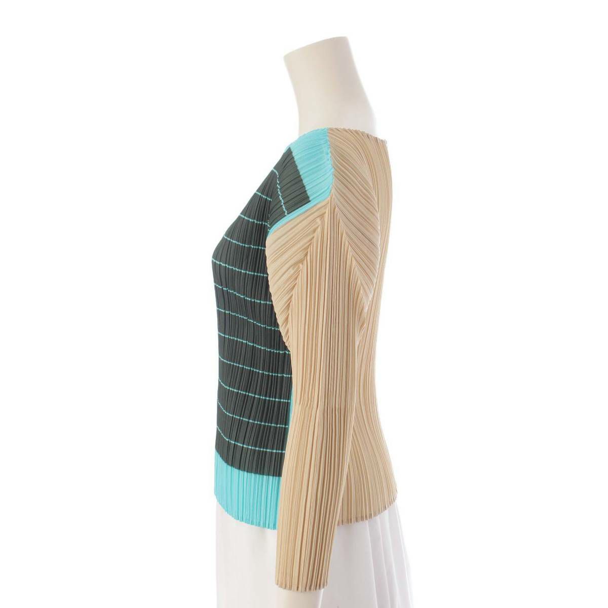 イッセイミヤケ プリーツプリーズ 長袖 ボーダー トップス PP64 JK237 ブルー 3