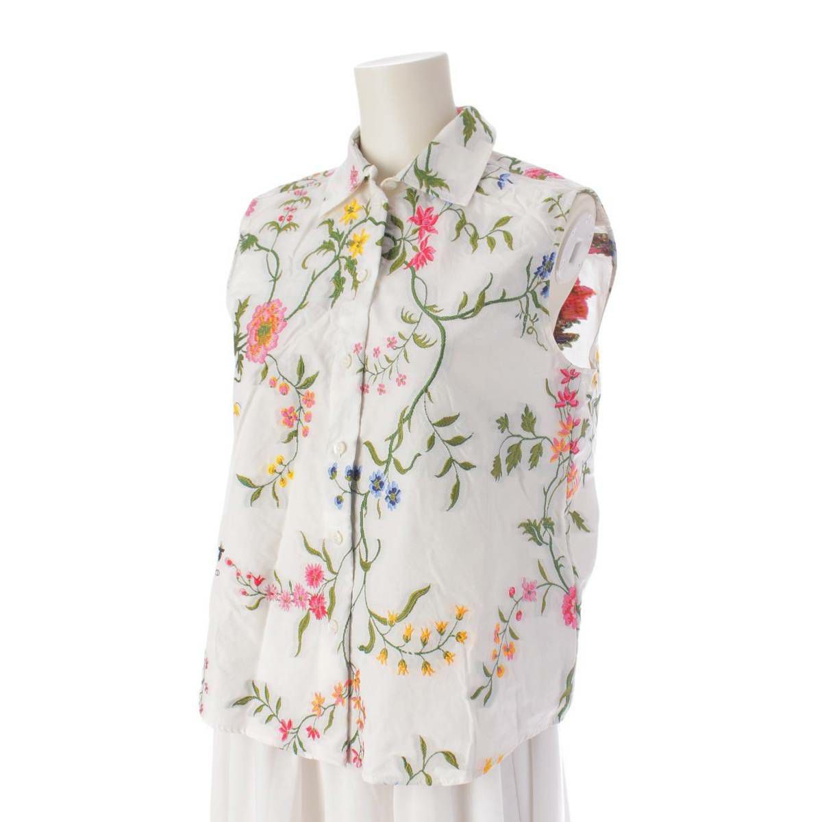 クリスチャンディオール Christian Dior 23SS Petites Fleurs ノースリーブ 花柄 ブラウス シャツ 321B60A3711 ホワイト 36
