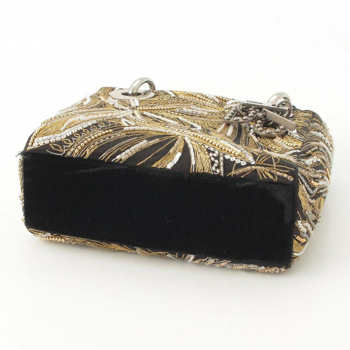 底部や持ち手のスエード地に擦れ、チャームにくすみ汚れあり