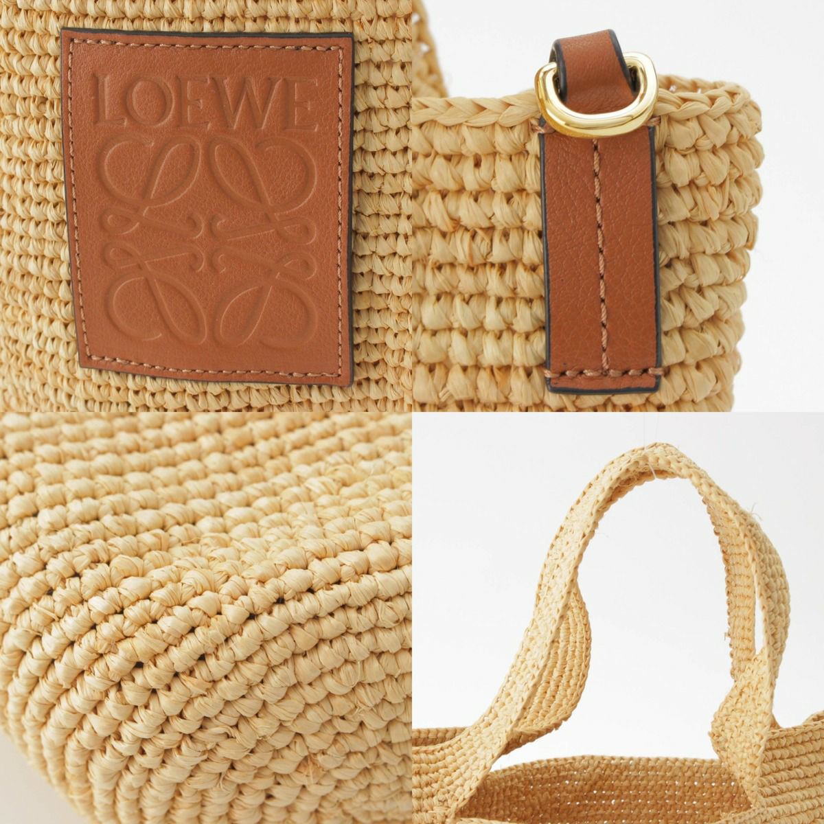 ロエベ Loewe スリット アナグラム レザー ラフィア 2WAY ショルダーバッグ ハンドバッグ ベージュ