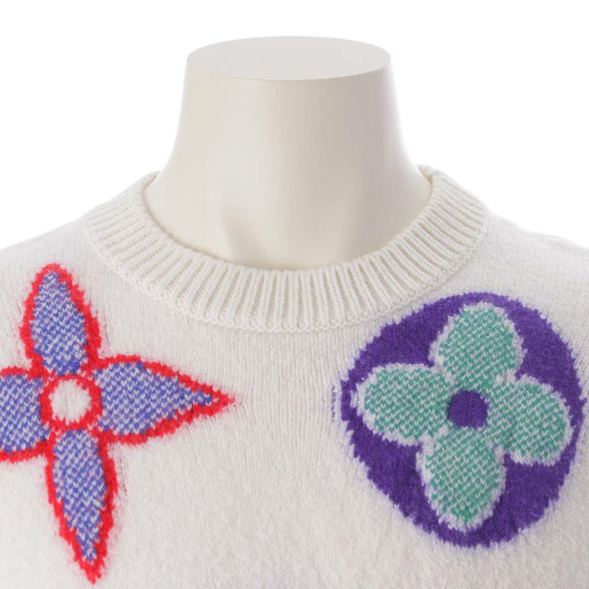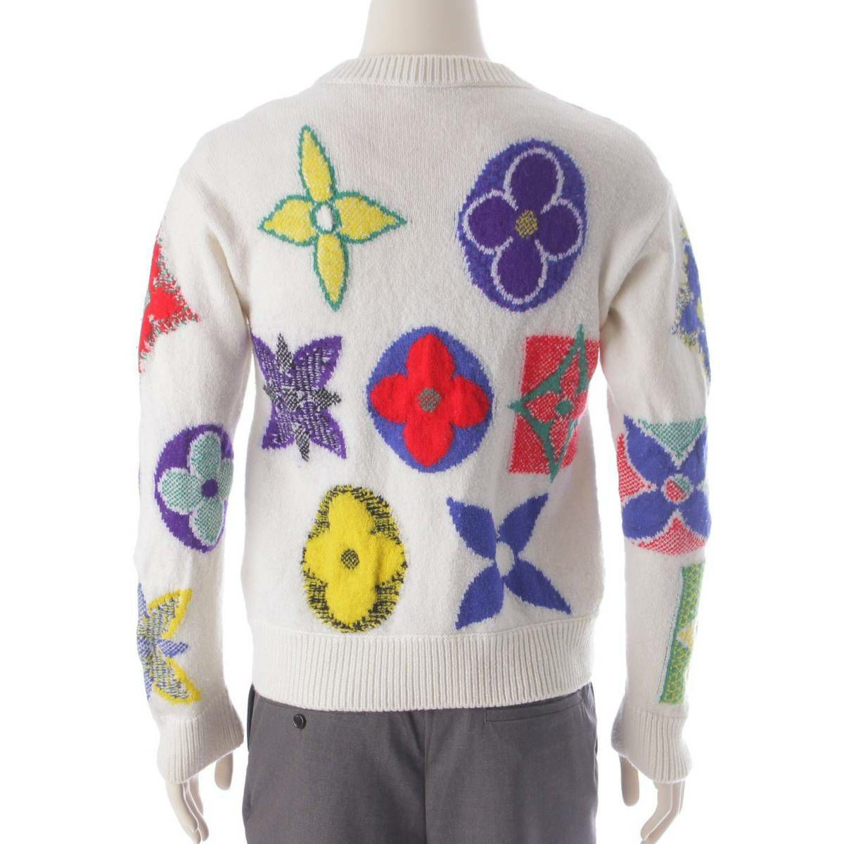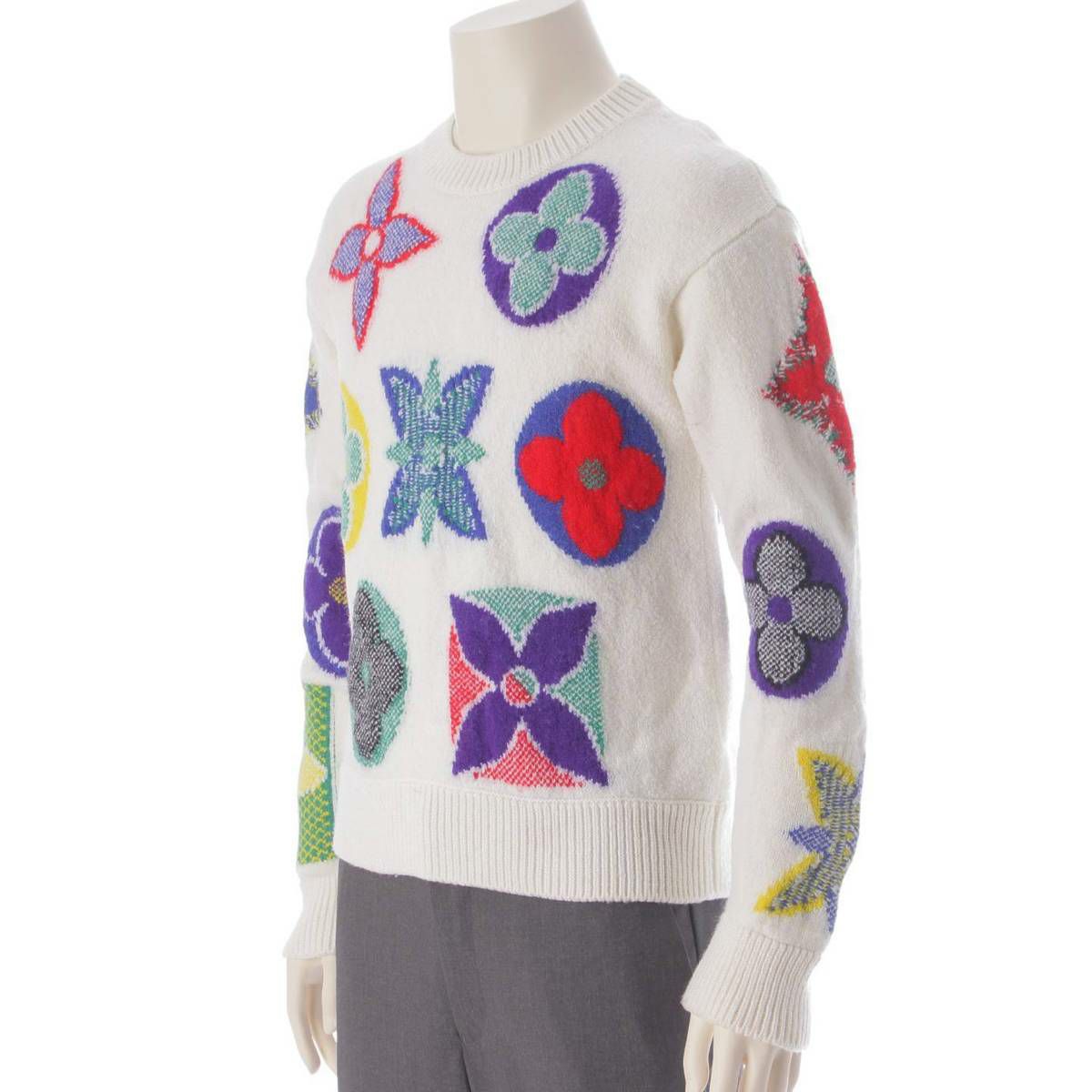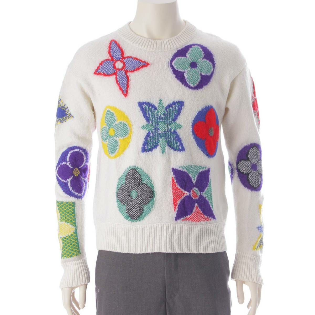 ルイヴィトン 20AW メンズ モノグラム 総柄 ウール ロゴ ニット セーター トップス ホワイト M