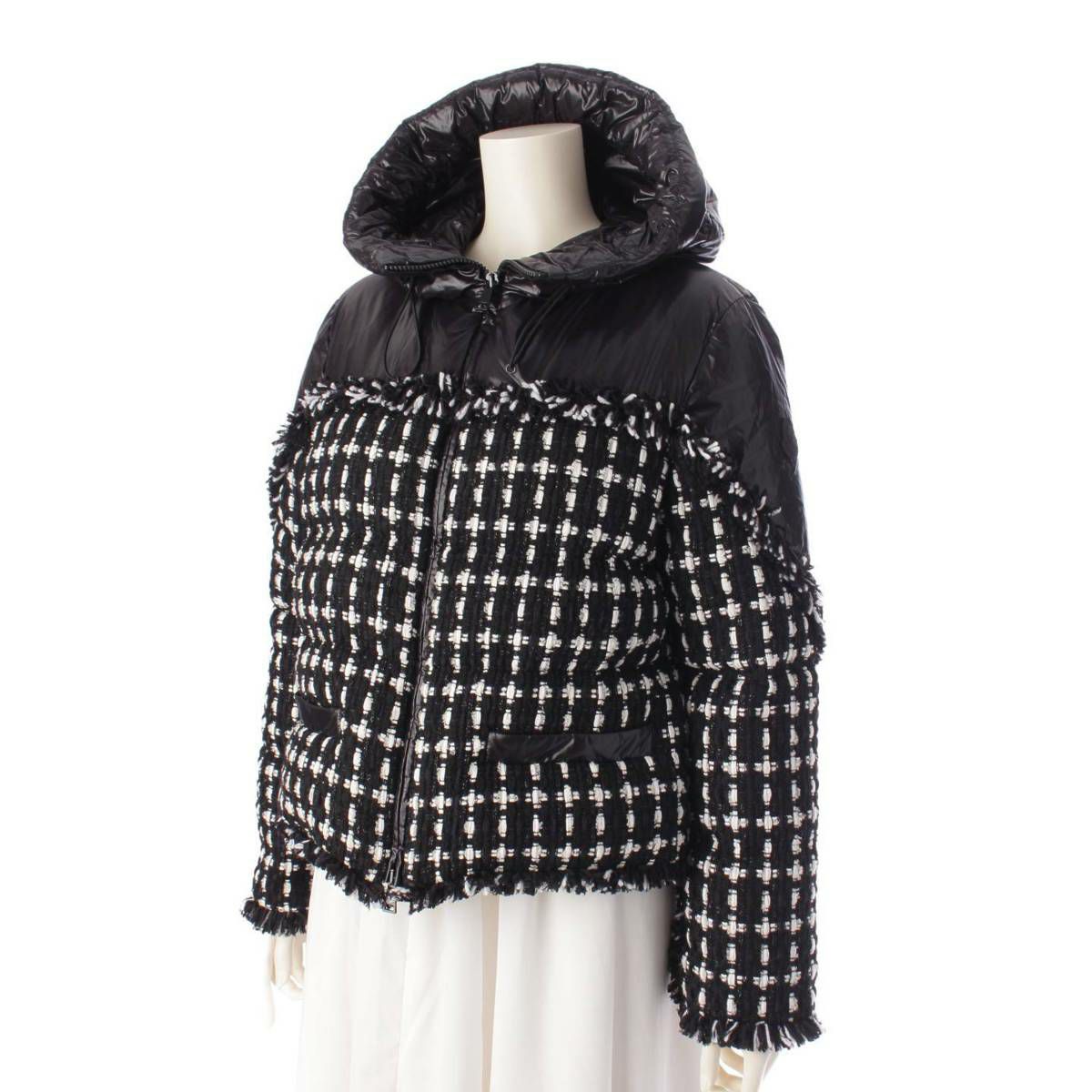 モンクレール Moncler 21年 Ginavelle ツイード切替 ダウンジャケット アウター ブラック 2
