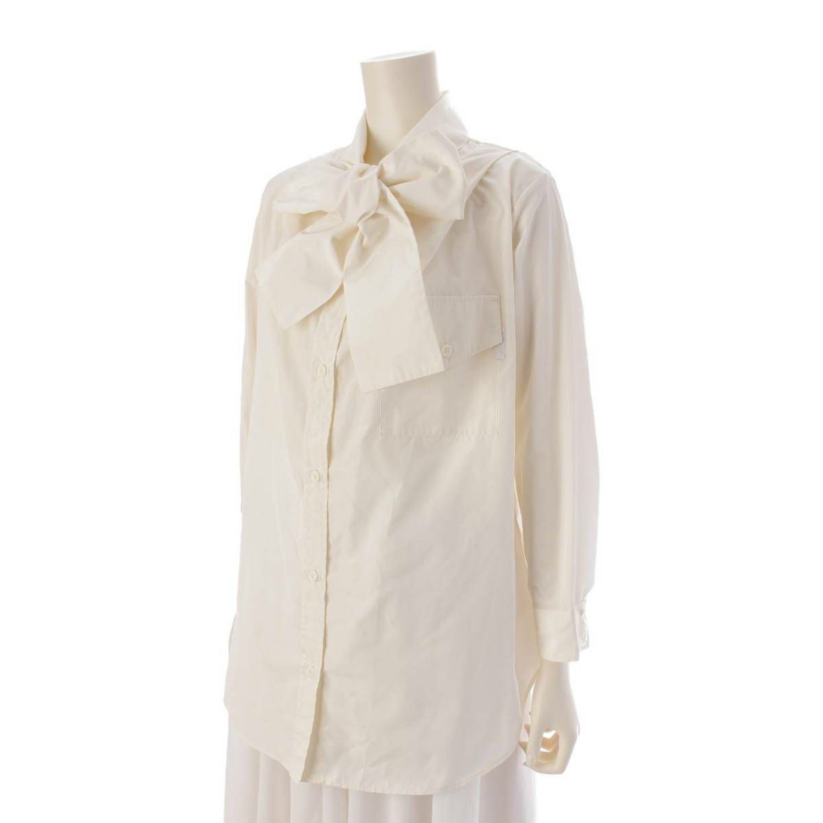 モンクレール Moncler 20年 長袖 ボウタイ リボン シャツ ブラウス F20932F71000 ホワイト 40