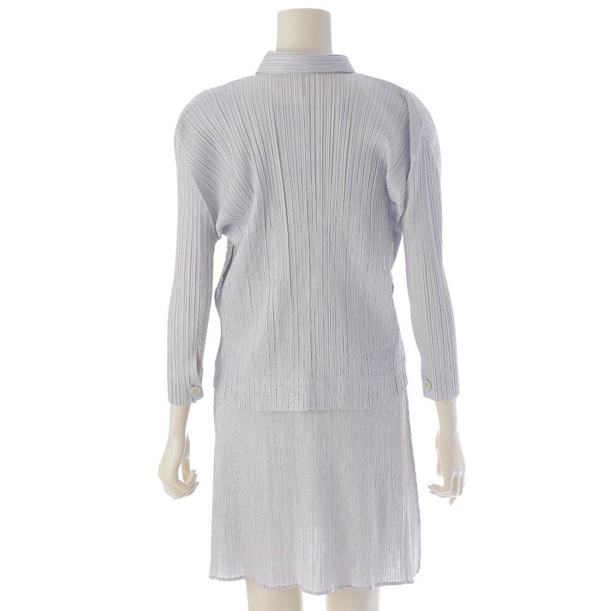 プリーツプリーズ イッセイミヤケ 型押し トラフィック スタンプ ジャケット ワンピース アンサンブル ライトグレー 3