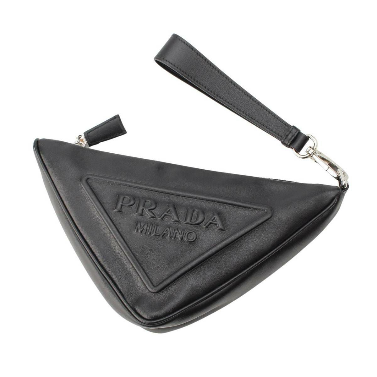 プラダ トライアングル 三角ロゴ レザー クラッチ ポーチ セカンドバッグ 1NE039 ブラック