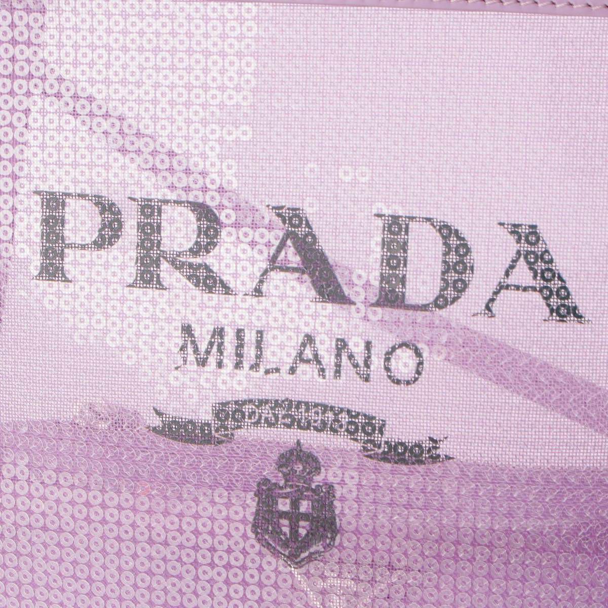 プラダ スパンコール メッシュ スモール ショッピング ハンドバッグ 1BG417 パープル