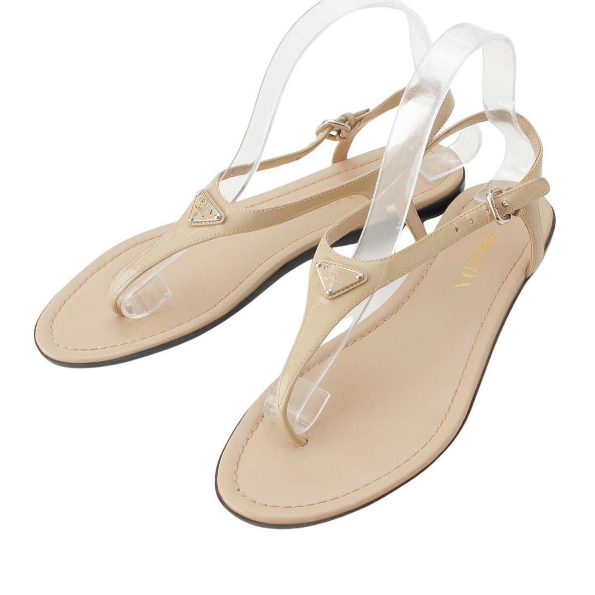 プラダ トライアングルロゴ エナメル ストラップ フラットサンダル ベージュ 38.5