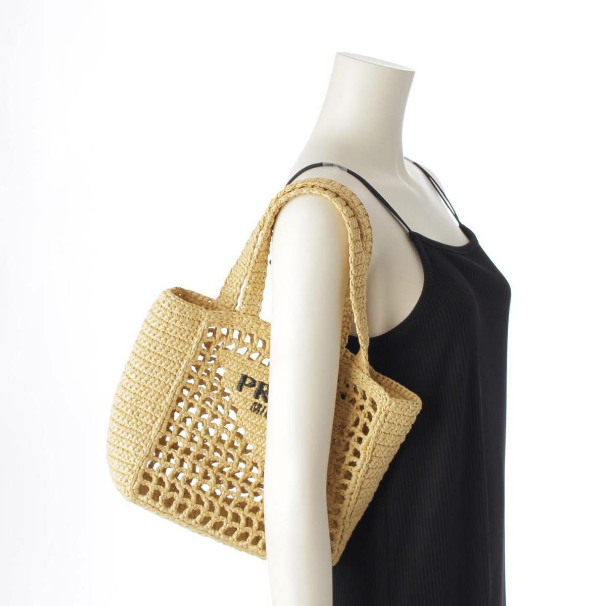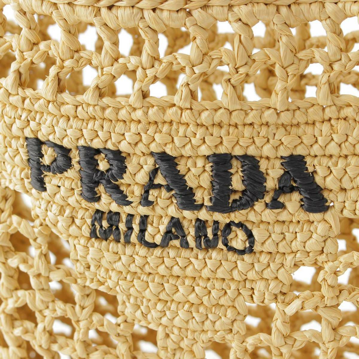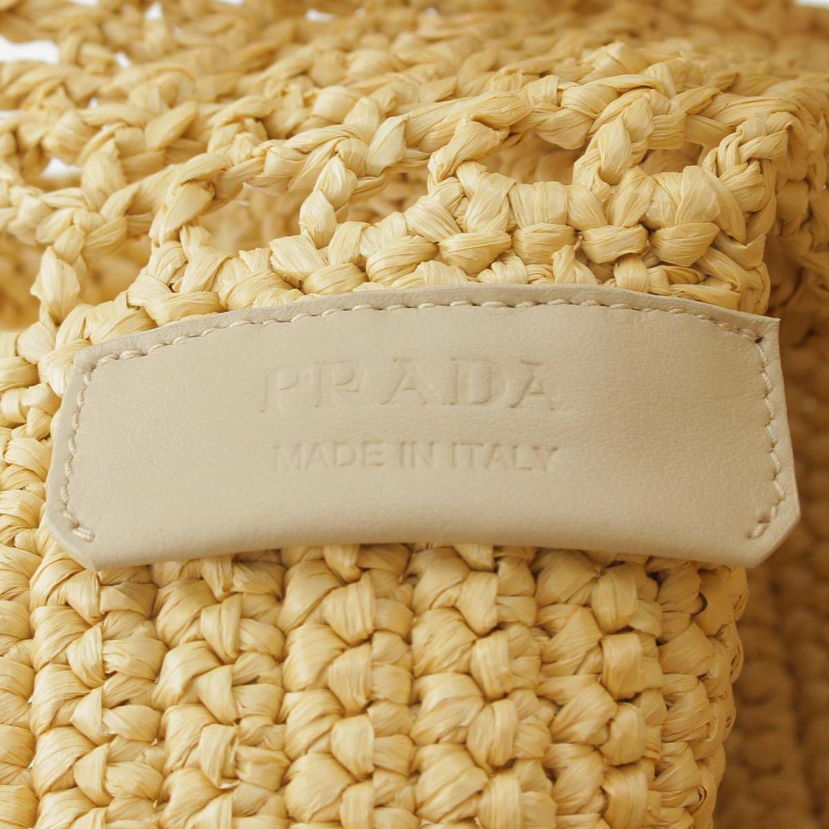 プラダ クロシェ ロゴ スモール トートバッグ ラフィア 1BG422 ナチュラル ベージュ