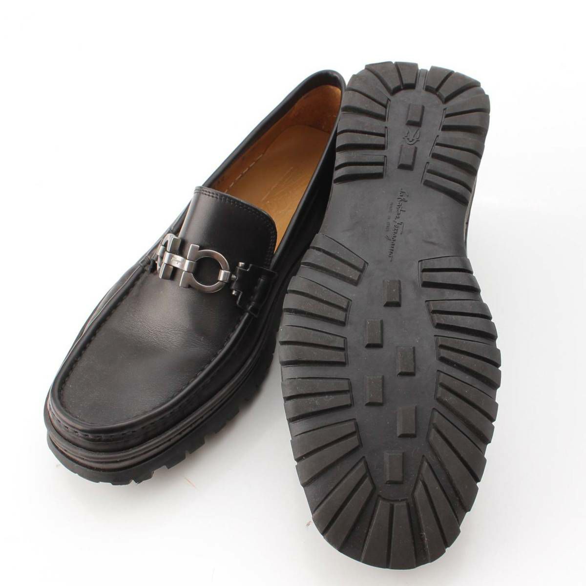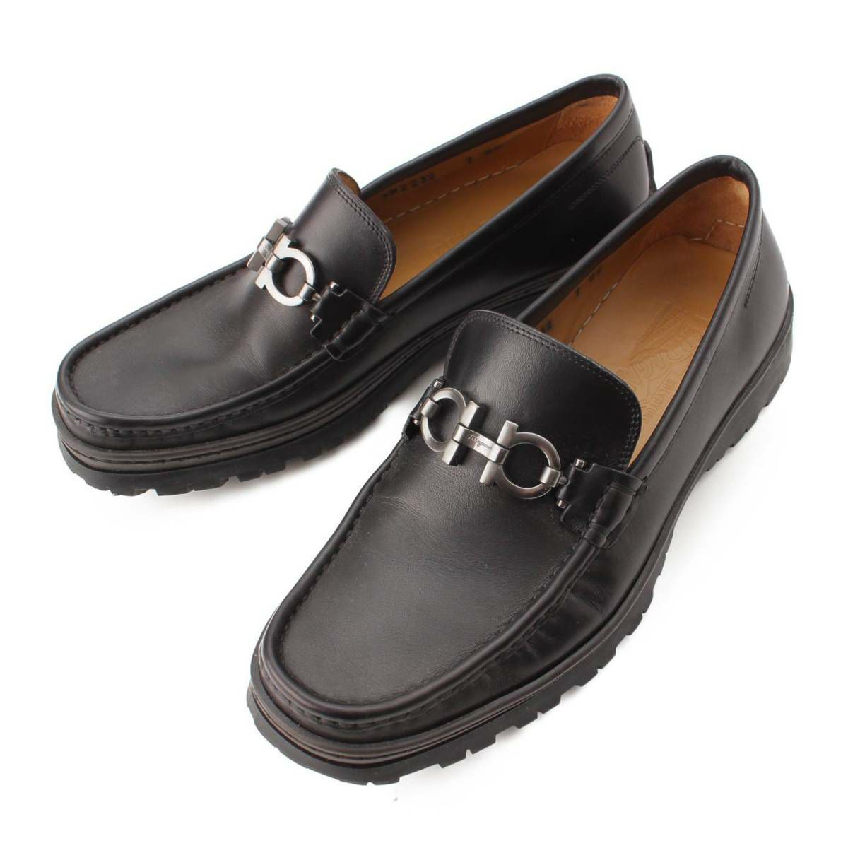 サルバトーレフェラガモ Salvatore Ferragamo ガンチーニ金具 レザー ローファー シューズ ブラック 7 EE