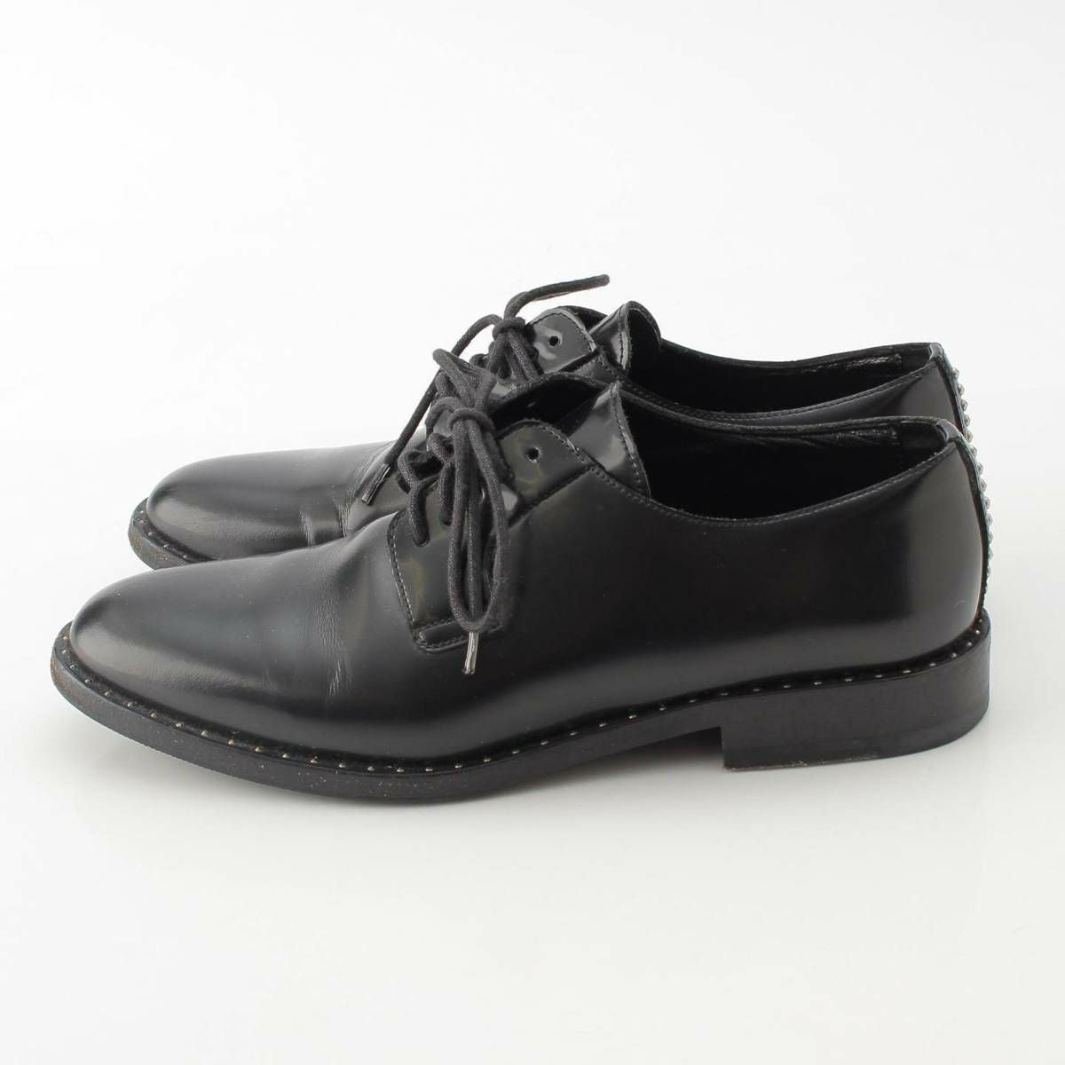サンローラン SAINT LAURENT レザー スタッズ プレーントゥ ビジネス レースアップシューズ ブラック 36