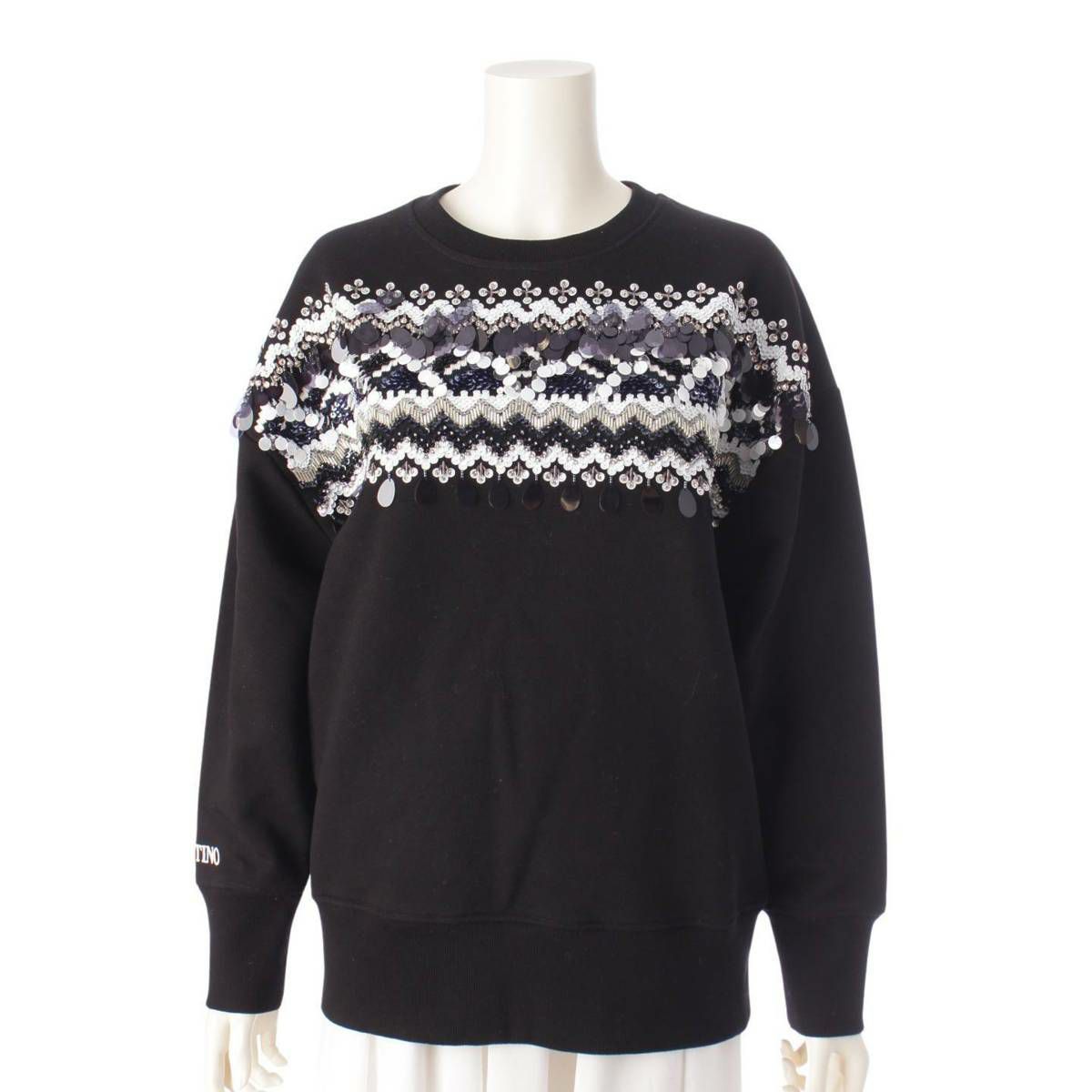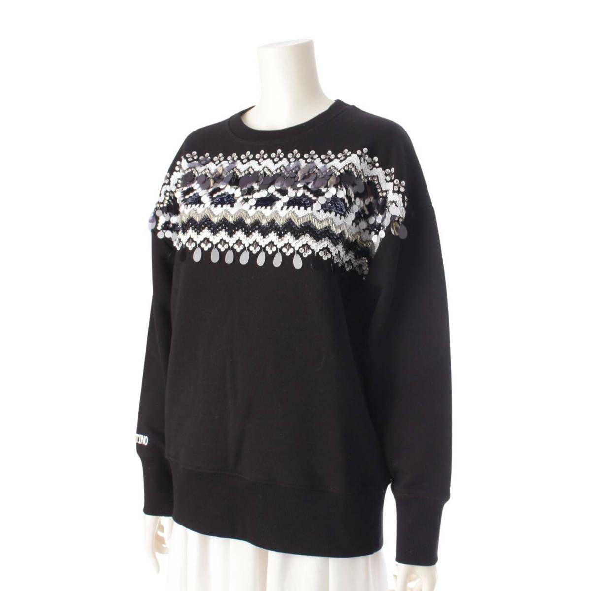 ヴァレンティノ 21年 スパンコール ロゴトレーナー スウェット トップス ブラック XS