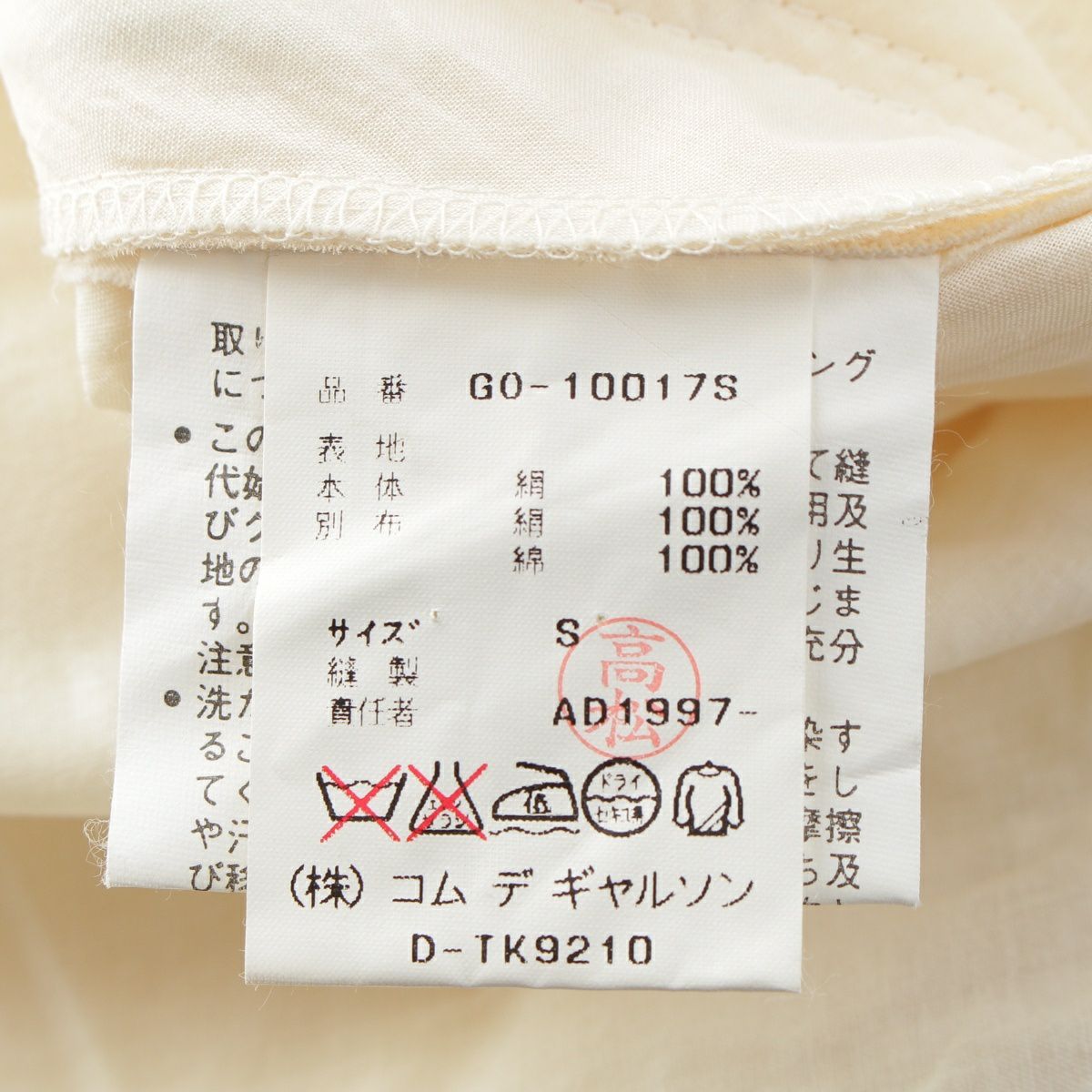 他の画像を見る COMME des GARCONS コムデギャルソン AD1997 98SS シルク Clustering Beauty クラスタリングビューティー シアー 総柄 変型 ドレス ワンピース GO-10017S アイボリー系 S お気に入りに登録する 当店通常価格 ¥ 121,000 のところ 当店特別価格 ¥ 110,000 税込 110,000円 100,000円