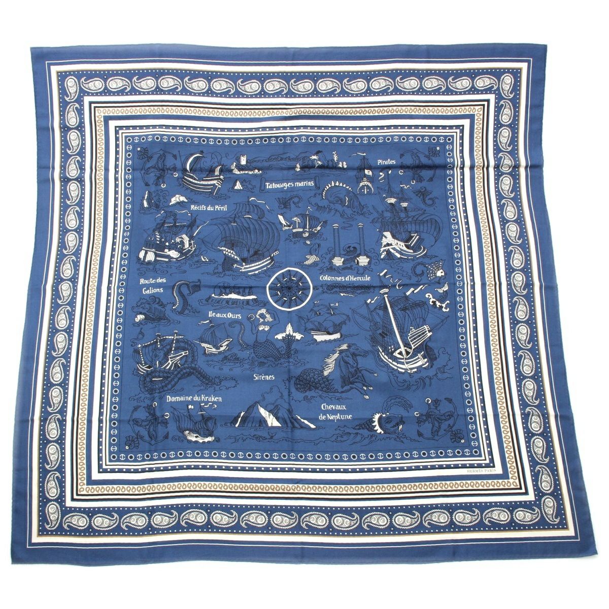 他の画像を見る HERMES エルメス カレジェアン カシミヤ シルク 140 Tatouages Marins Bandana 船乗りのタトゥー ストール ブルー お気に入りに登録する 当店通常価格 ¥ 137,500 のところ 当店特別価格 ¥ 126,500 税込 125,000円 115,000円