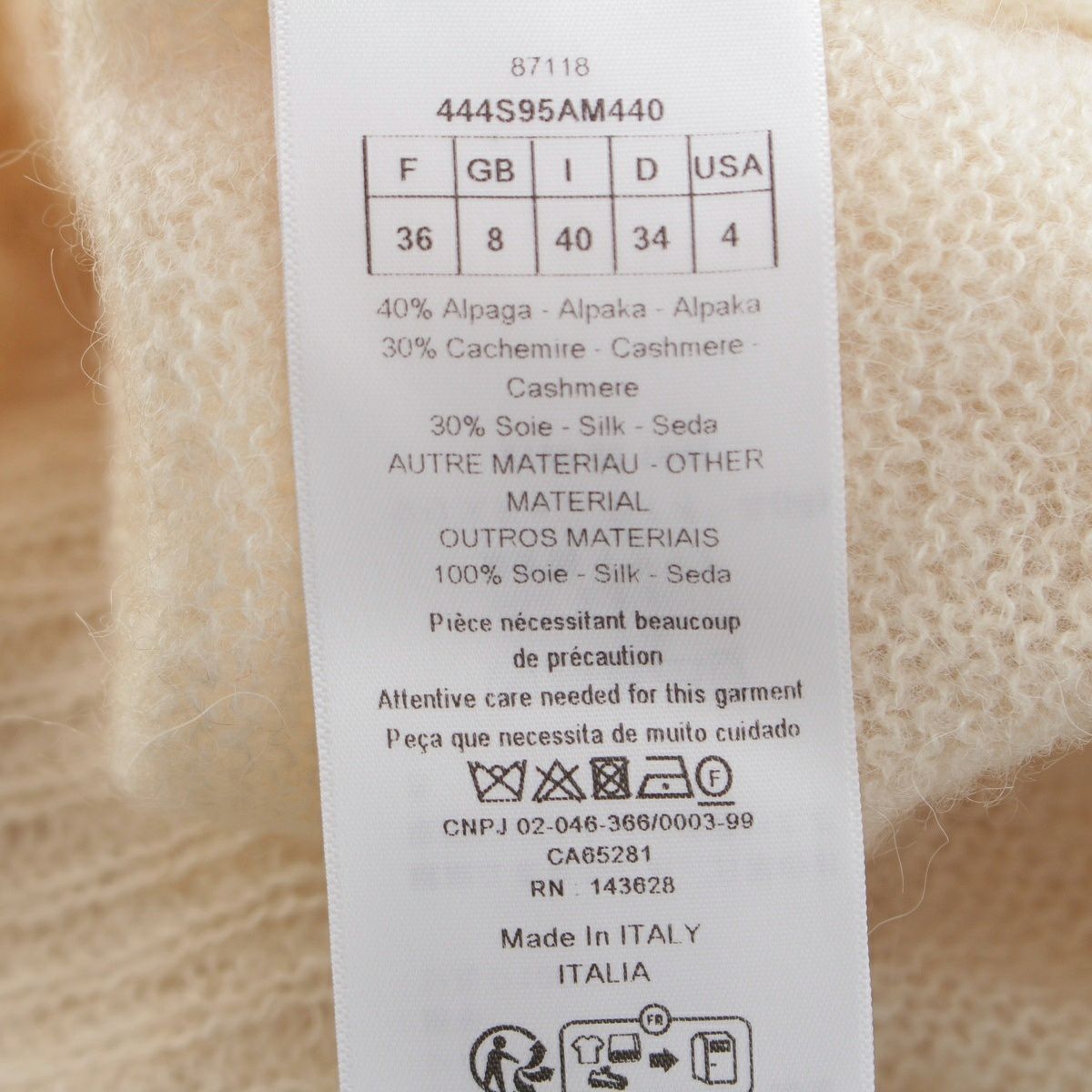 他の画像を見る Christian Dior クリスチャンディオール 24AW アルパカ シルク カシミヤ 襟レース セーター ニット トップス 444S95AM440 ホワイト ブラック 36 お気に入りに登録する 当店通常価格 ¥ 60,500 のところ 当店特別価格 ¥ 55,000 税込 55,000円 50,000円