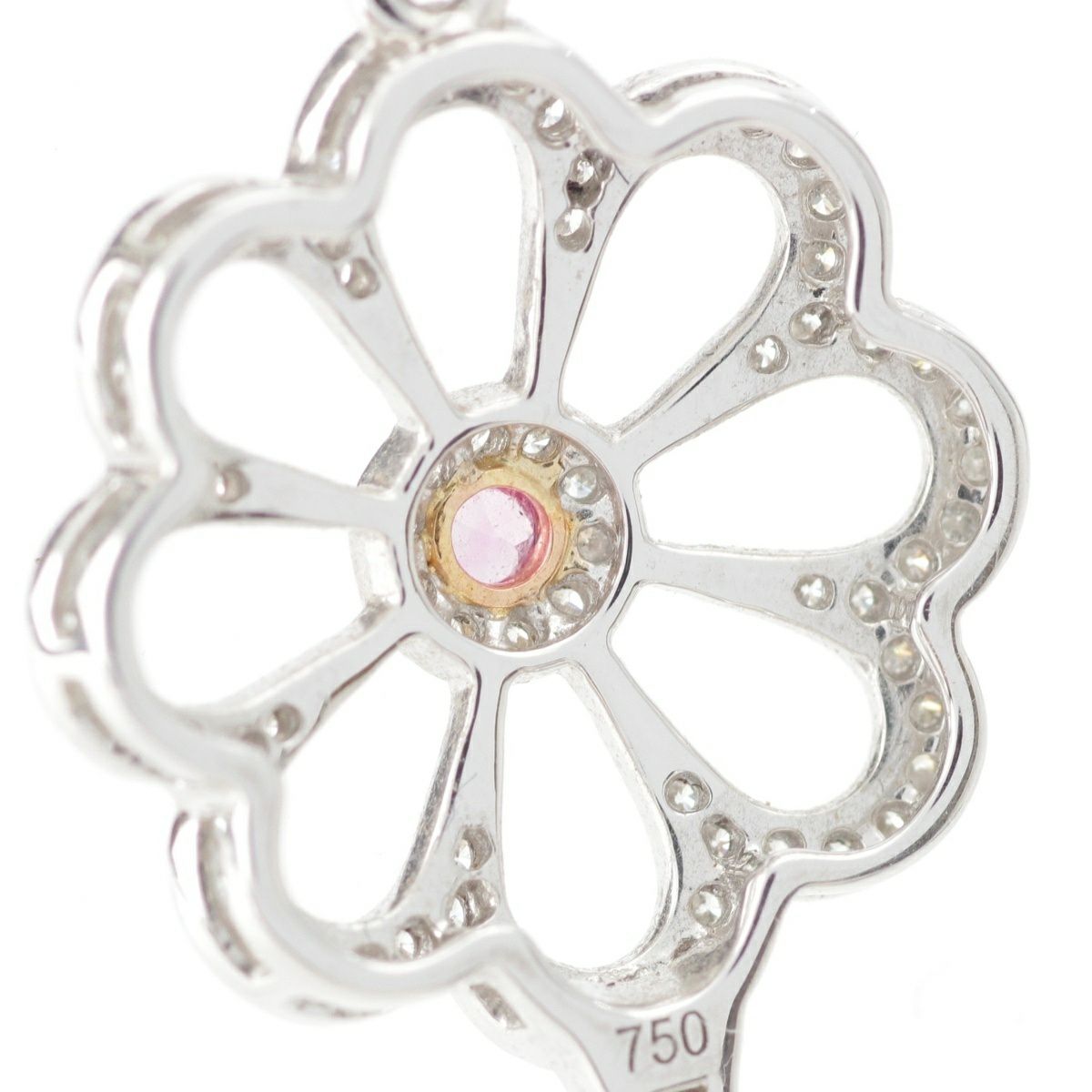 ノーブランド ダイヤ ピンクサファイア キー フラワー 鍵 ネックレス ペンダント K18WG D030 S005 ホワイトゴールド 5.6g